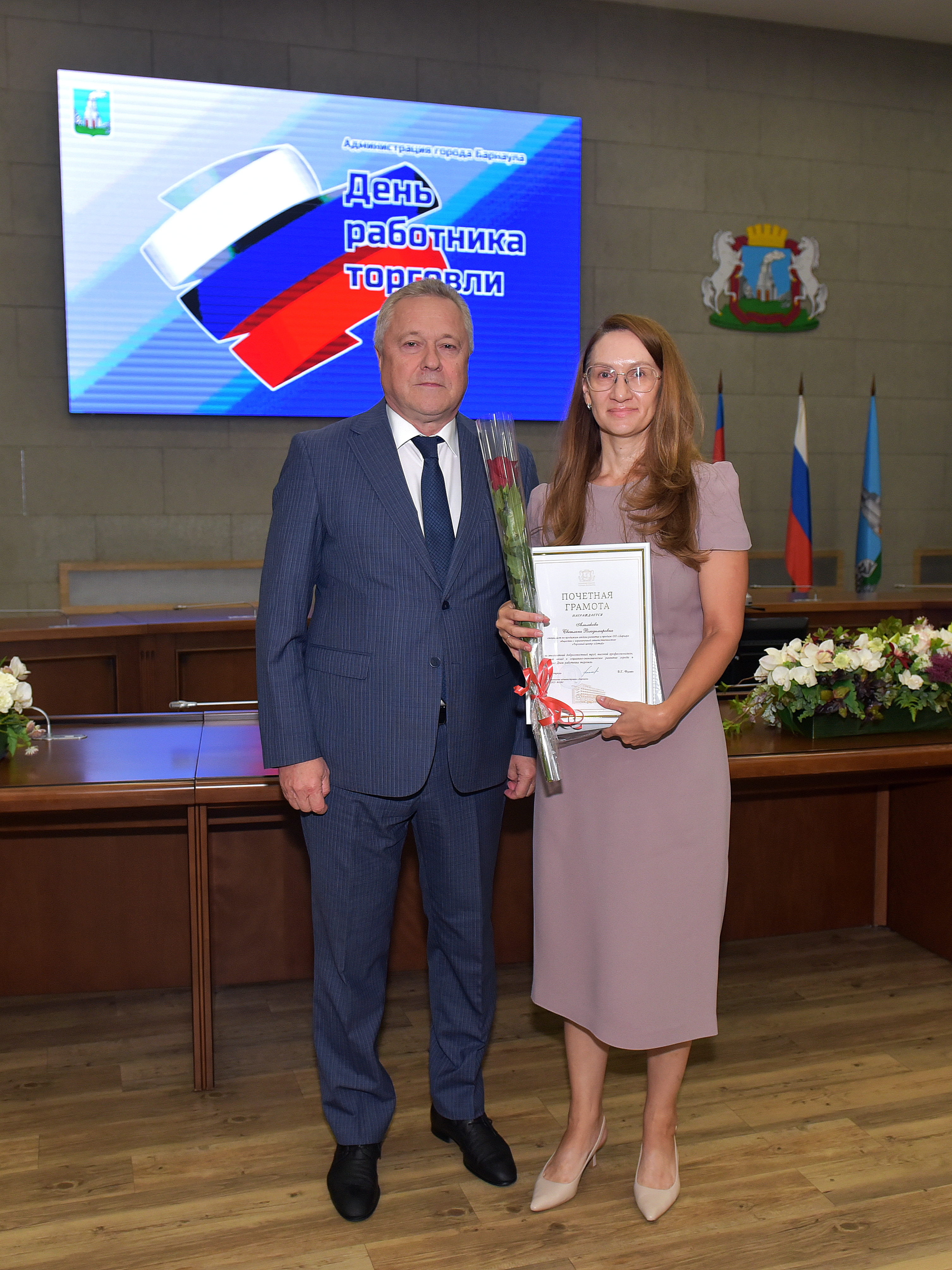 «Оборот торговли за 2024 год в Барнауле составил более 174 миллиардов рублей и превысил оборот прошлого года на 22%. Это очень значимый вклад в экономику города. И это ваша заслуга. Благодаря вашему труду мы сегодня видим, как наш город развивается, появляются новые общественные пространства, зоны отдыха, а вместе с ними современные форматы торговли. Вы создаете хорошее настроение жителям города, улучшаете их жизнь, их быт. Несмотря на нелёгкие времена для всей России, вы не перестаёте заботиться о повышении качества и культуры обслуживания»