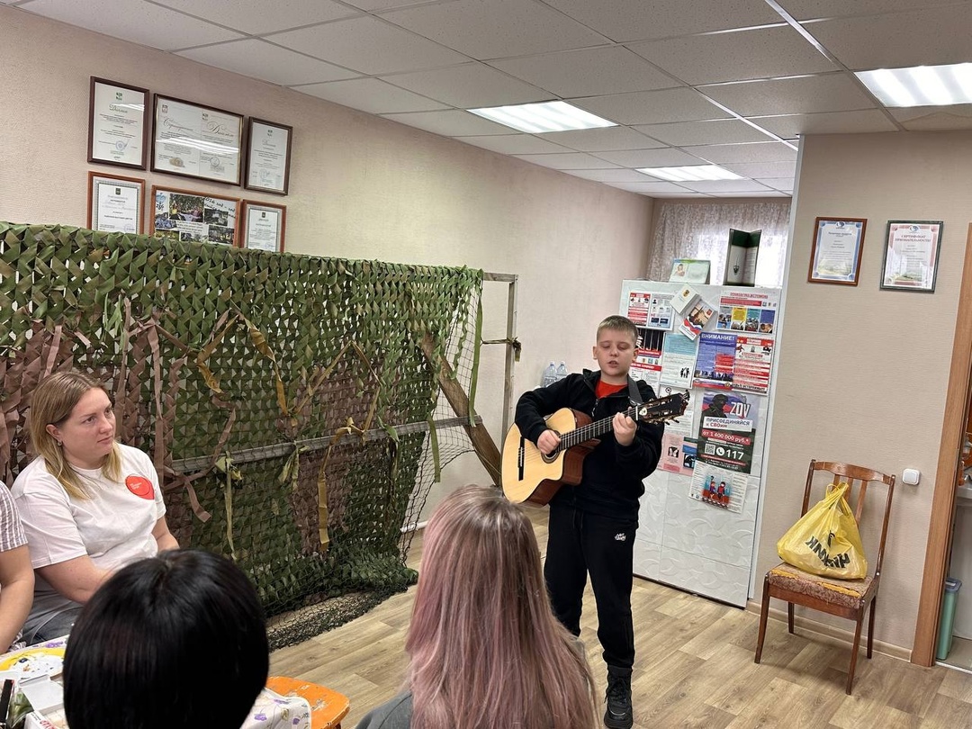 Житель поселка Егор Бахарев исполнил для участников мероприятия патриотические песни, которыми покорил всех зрителей. Участники мероприятия поделились планами в волонтерском движении, выработали стратегию совместной работы для отправки гуманитарной помощи нашим защитникам.