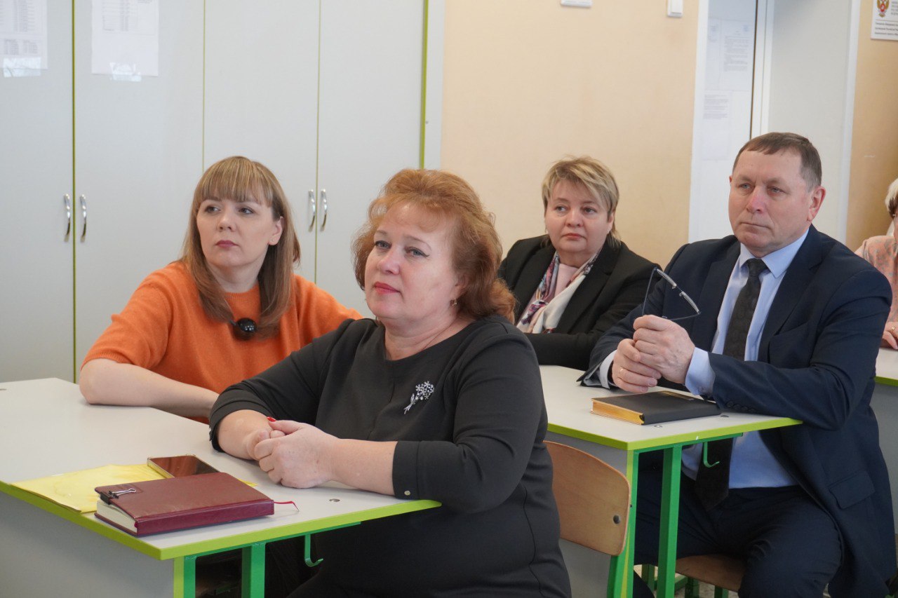 Директор образовательного учреждения Мария Антропова рассказала гостям об особенностях школы. Несмотря на её относительно небольшой размер, здесь обучается около 500 человек, и все классы полностью укомплектованы. В школе 11 учебных кабинетов, спортивный зал и буфет, а обучение организовано в две смены.