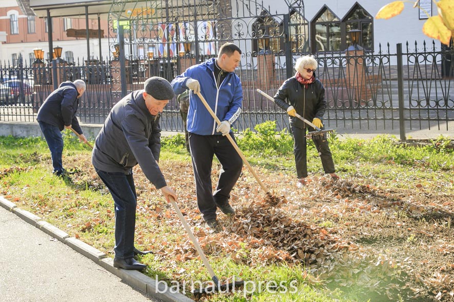 20 октября в Барнауле в рамках проведения месячника осенней санитарной очистки и благоустройства состоялся общегородской субботник. Сотрудники организаций, муниципальные служащие, депутаты, общественники, студенты, волонтеры и активные жители Барнаула вышли на улицы города для уборки территории.