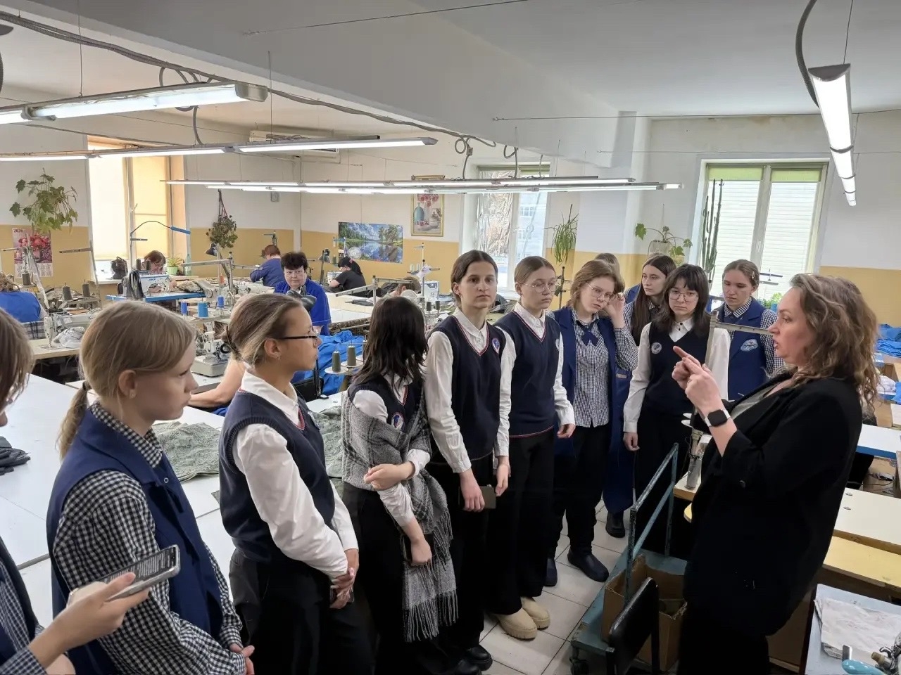 Экскурсия помогла школьницам увидеть работу профессионального оборудования и познакомиться с профессиями закройщика, швеи, конструктора и дизайнера. Такой формат профориентации помогает подросткам лучше понять особенности будущей профессии и увидеть реальный производственный процесс.