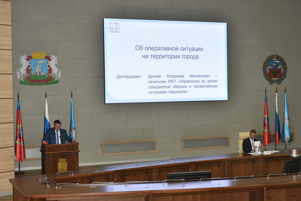 Об оперативной ситуации на территории города доложил начальник городского управления по делам ГОЧС Владимир Драчев. Он сообщил, что в Барнауле продолжаются противопаводковые мероприятия. За прошлую неделю в администрацию города поступило 43 обращения граждан и организаций о подтоплениях участков дорог, приусадебных участков, производственных территорий. На сегодняшний день на контроле остается улица Тепличный комбинат в селе Лебяжье, ситуация на Черницком кладбище и уровень воды в реке Барнаулка.