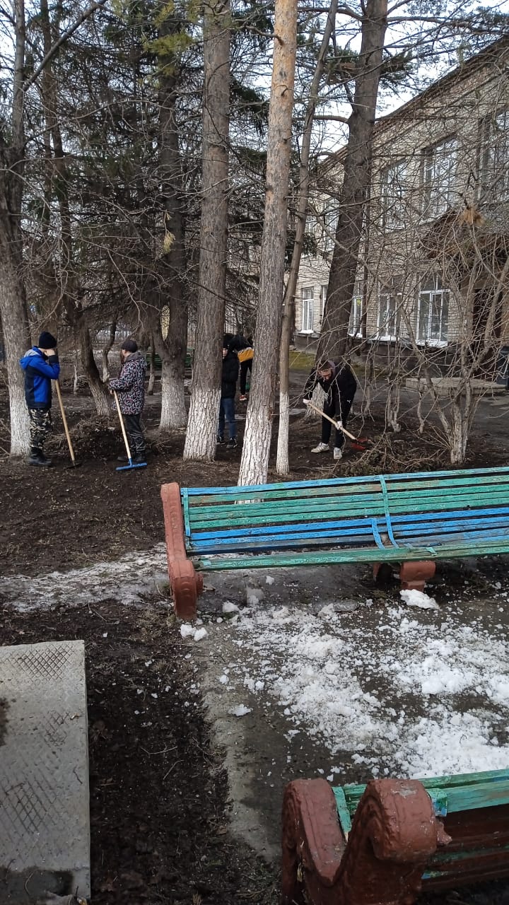 Сегодня, 2 апреля, ребята очистили от вытаявшего мусора зеленую зону вблизи здания по адресу: ул. Привокзальная, 17а и ворошили снег в сквере между домами
