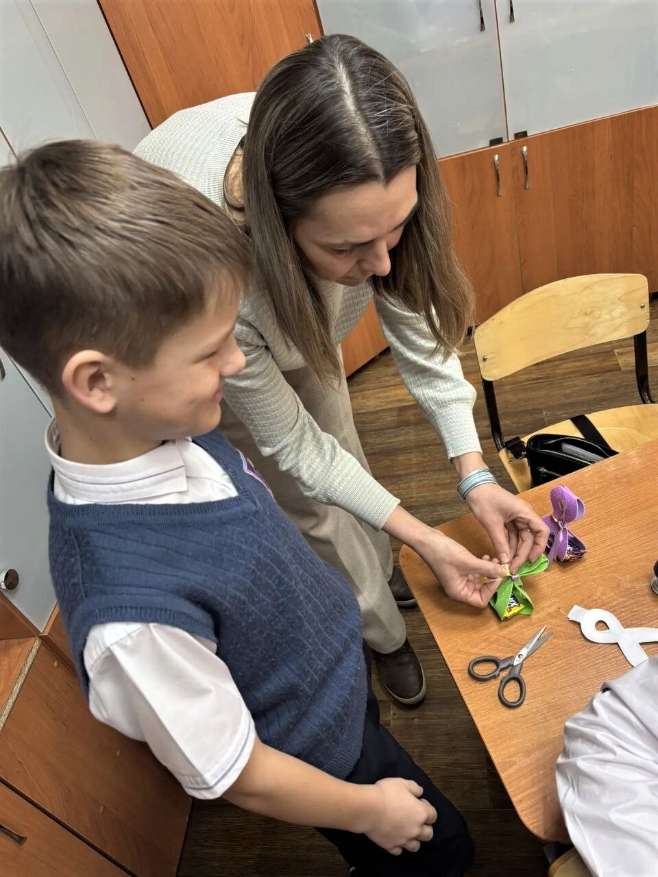 Мероприятие прошло на базе школы №127 под руководством опытных рукодельниц ТОС. Юные участники мастер-класса с энтузиазмом погрузились в творческий процесс, освоили искусство создания объемных восьмерок из цветной бумаги. Ребята использовали разнообразные цвета бумаги, блестки, ленты и другие декоративные элементы, позволяющие придать изделиям индивидуальность и праздничный вид. Представители совета ТОС объясняли каждый этап работы, от складывания бумаги до финального декорирования, помогая юным мастерам справиться с любыми возникающими трудностями.
