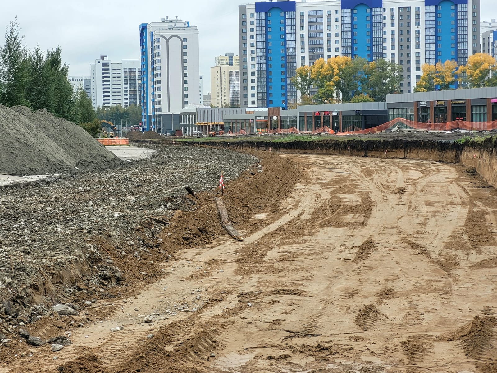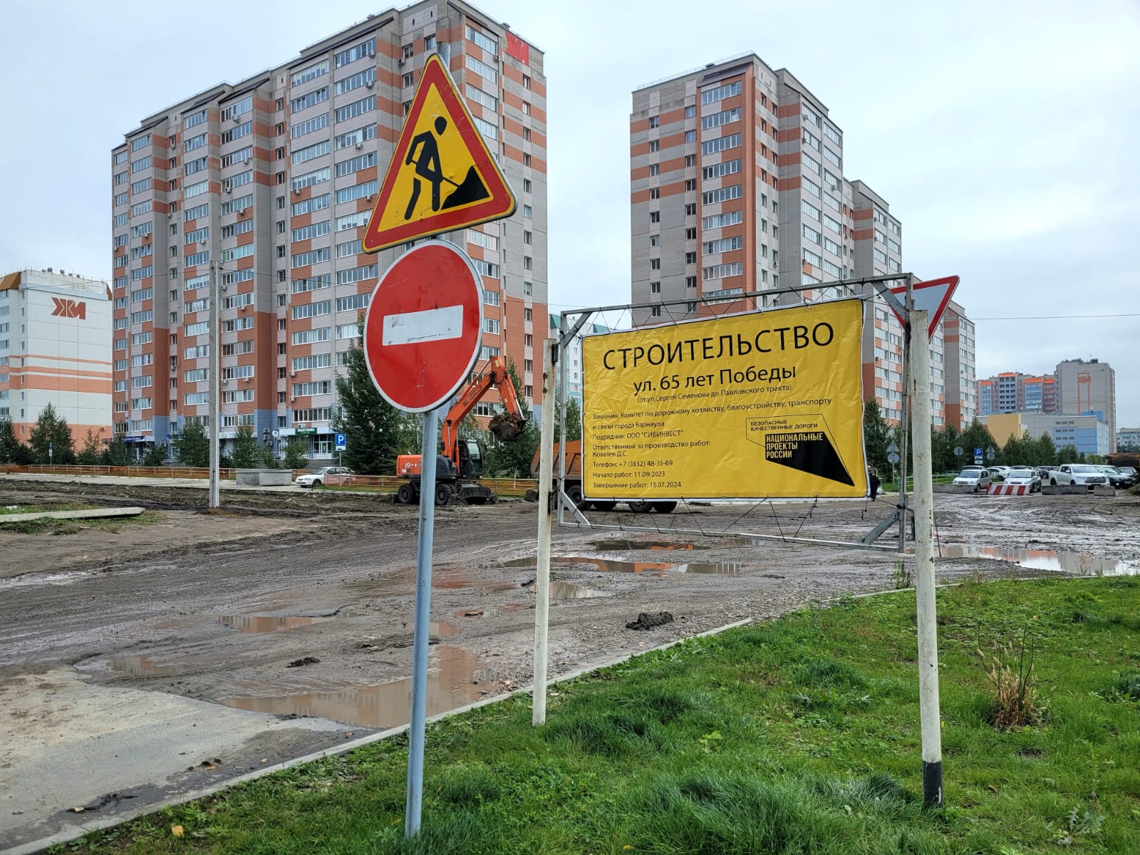 В ходе строительства дороги по улице 65 лет Победы (от улицы Сергея Семенова до Павловского тракта) подрядчик ООО «Сибинвест» выполняет земляные работы.