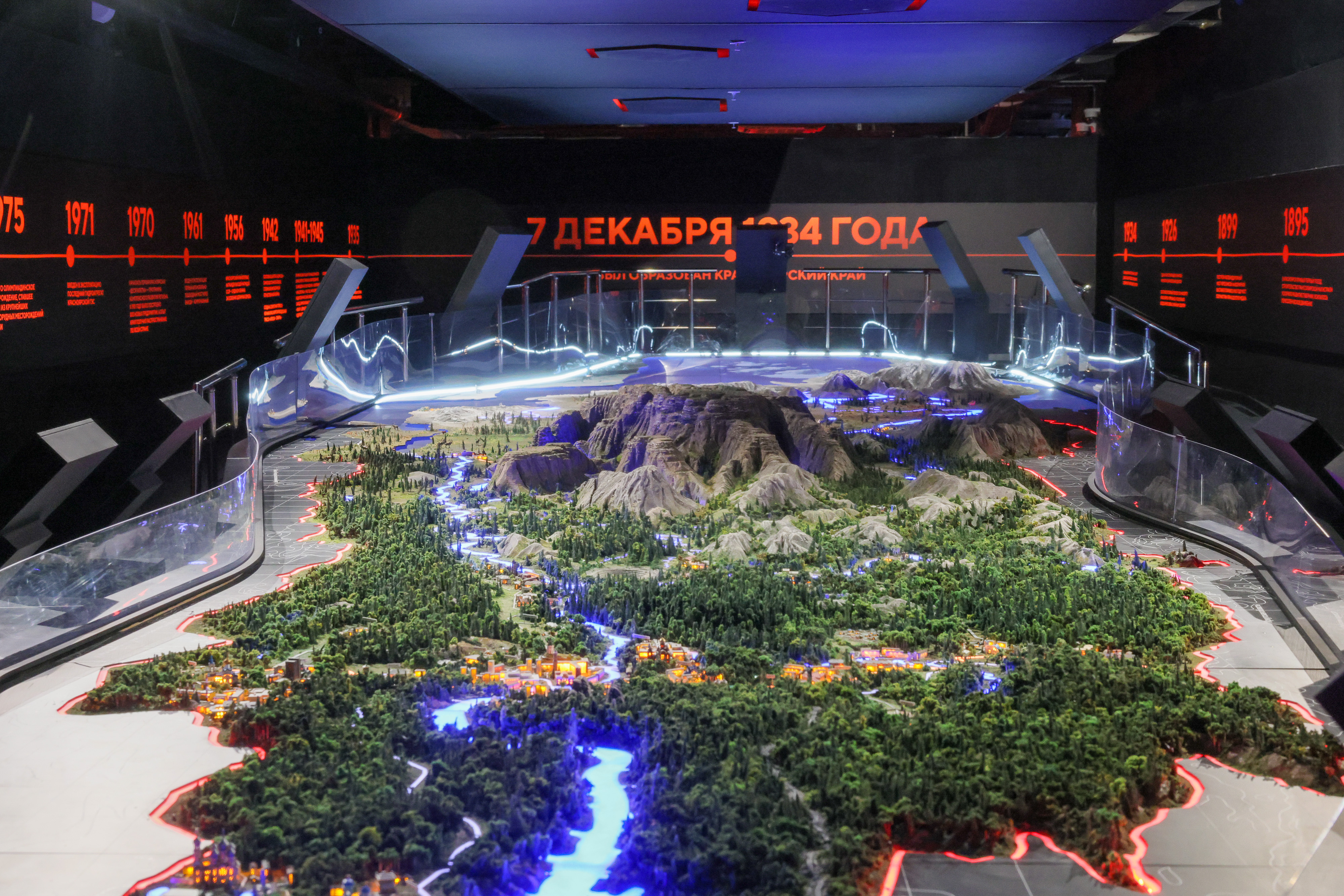 Полпред осмотрел тематические галереи с самыми значимыми достижениями региона. Его особое внимание привлек один из самых впечатляющих экспонатов – шестнадцатиметровый макет Красноярского края. Над созданием экспозиции работали красноярские творческие команды, в том числе резиденты кластера «Квадрат» – молодые люди, создавшие уникальный стенд региона на выставке-форуме «Россия» на ВДНХ, в 2023 году.
