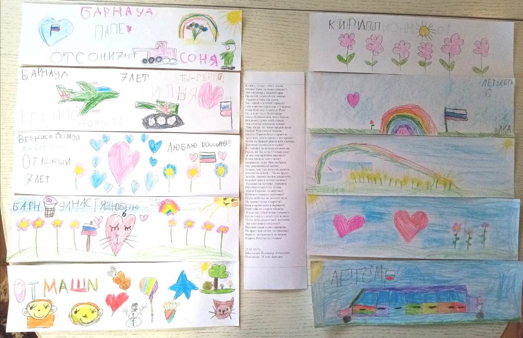 Пока юные защитники Отечества микрорайона «Малаховский» выясняли кто из них сильнее, маленькие жители поселка «Докучаевский» подготовили творческие подарки – рисунки. Они нарисовали их в рамках конкурса и планируют отправить вместе с посылками для военнослужащих в зону СВО.