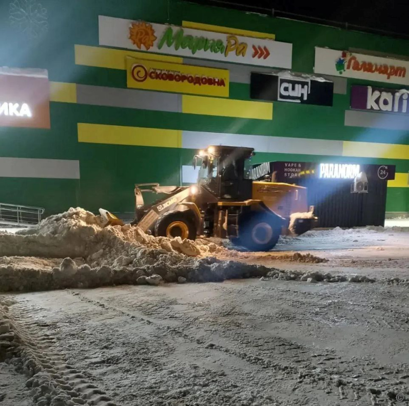 Механизированная очистка проведена у торговых центров Лето, Огни, Простор, Метро, магазинов торговых сетей Мария–ра по ул.Георгиева, 35, ул.Малахова, 142.