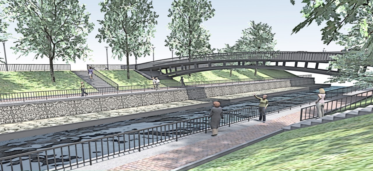 Согласно проекту, набережную Барнаулки благоустроят с обеих сторон реки - от проспекта Красноармейского до улицы Приречной. Появятся пешеходная зона, освещение, дополнительное озеленение, два моста.