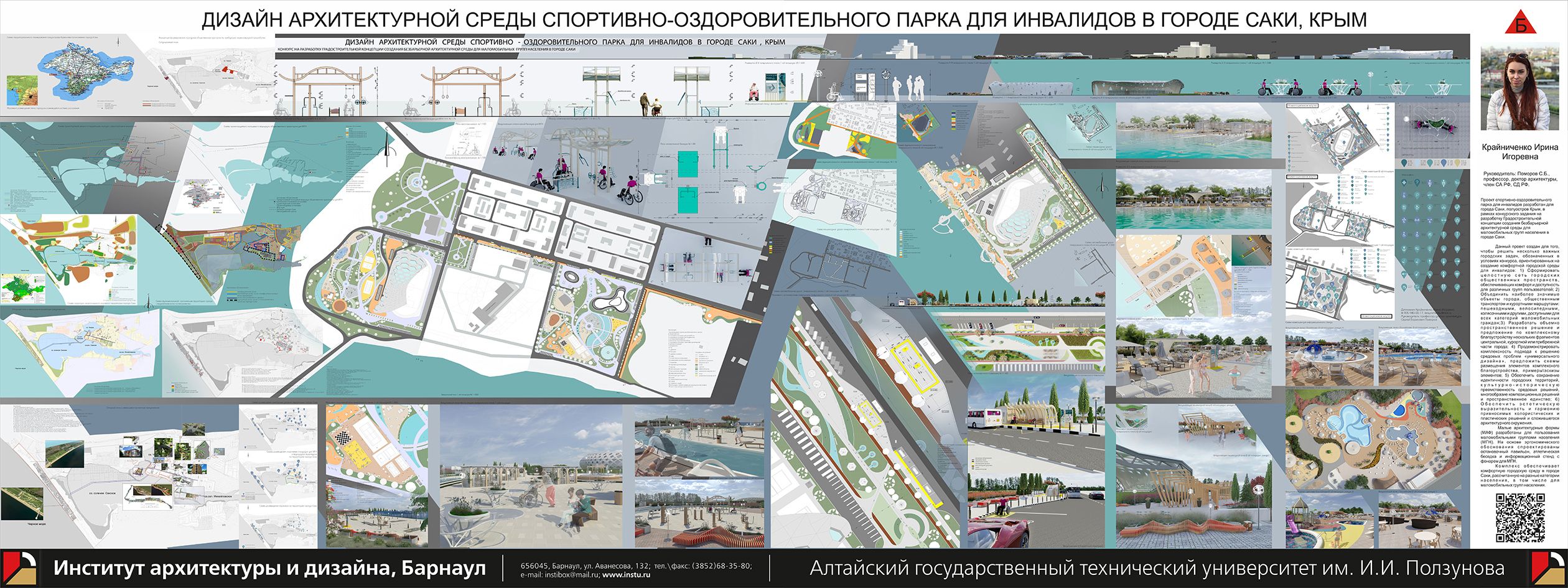 Наиболее высокую оценку получили два проекта студентов АлтГТУ и были дополнительно отмечены наградами Союза дизайнеров России. Это проект Ирины Крайниченко (руководитель Сергей Поморов, профессор, доктор архитектуры) «Градостроительная концепция создания безбарьерной архитектурной среды в городе Саки. Крым». И проект Ксении Зайцевой (руководитель Юлия Раменская, доцент кафедры архитектуры и дизайна АлтГТУ) «Комплексная визуализация международной биеннале дизайна PRO будущее». Эксперты высоко оценили как саму разработку комплекса айдентики, так и воплощение проекта, - рассказали в техническом вузе.