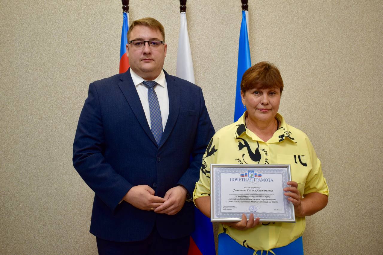 Благодарностью главы администрации Индустриального района в связи с празднованием юбилейного дня рождения поощрена воспитатель детского сада №262 Юлия Федечкина.