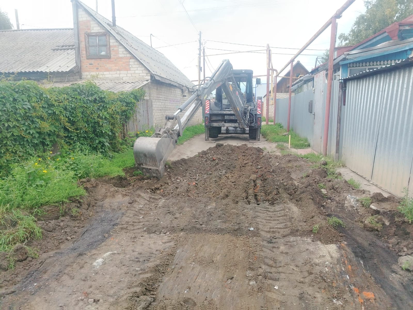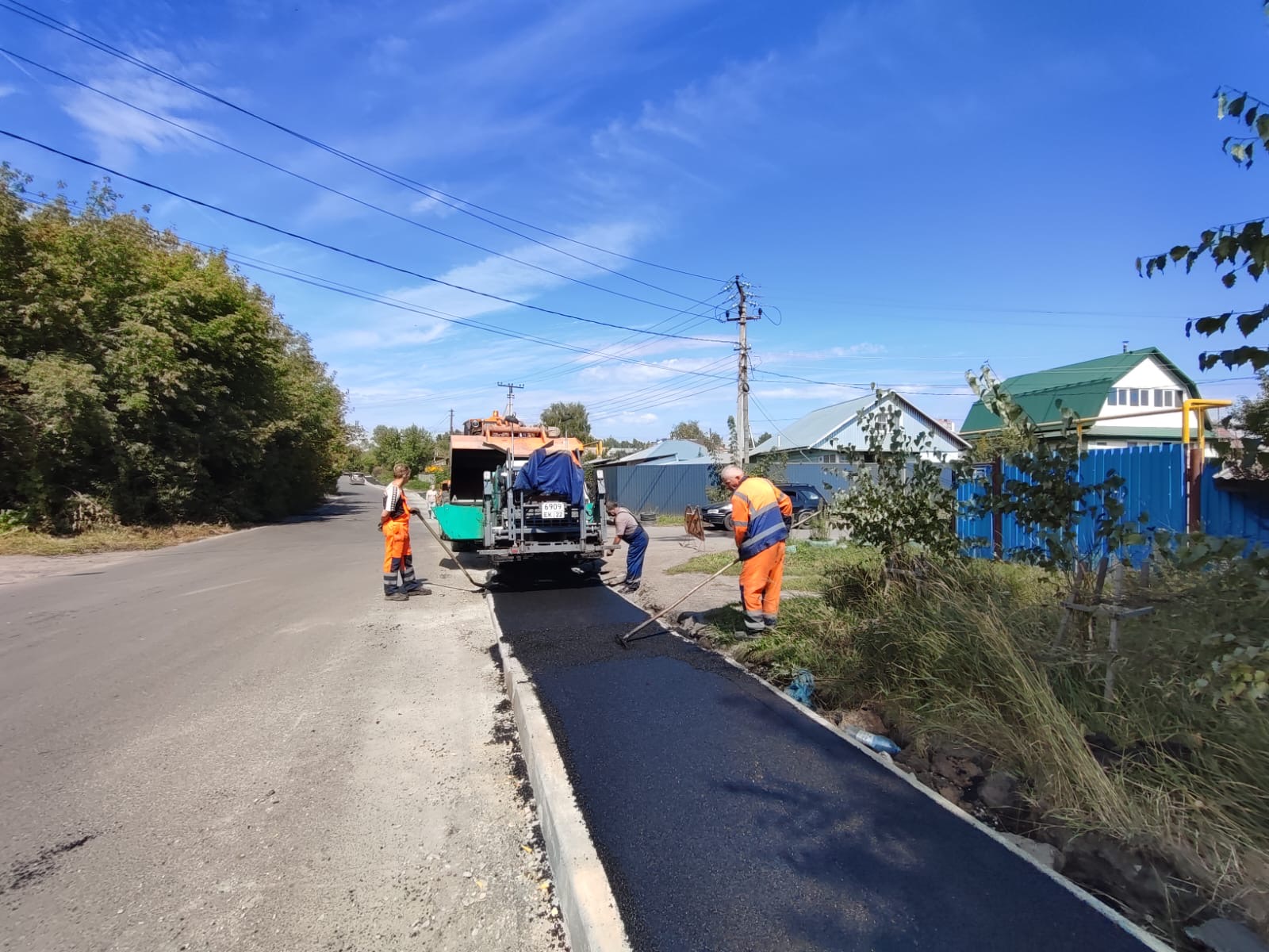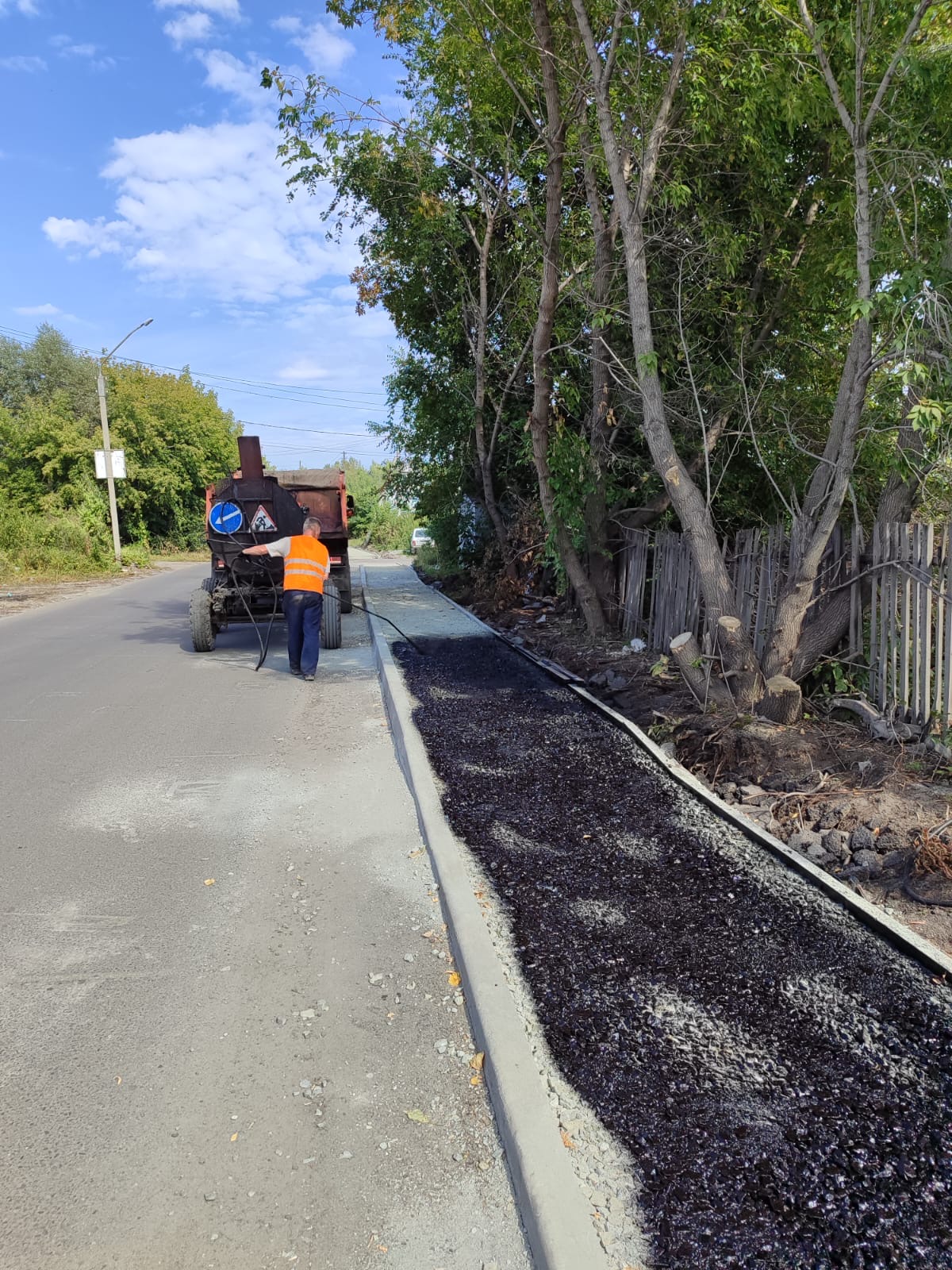 Также продолжается строительство тротуара на улице Кутузова. Сегодня начата укладка асфальта на ранее обустроенном участке, а также продолжается установка бордюр.