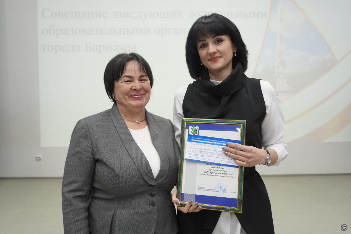 Также были подведены итоги профессионального конкурса «ПРОФруководитель года: партнер, профессионал, наставник-2025», инициированного Барнаульской городской организацией Общероссийского Профсоюза образования. Заслуженные дипломы за управленческое мастерство получили 25 руководителей дошкольных организаций города.