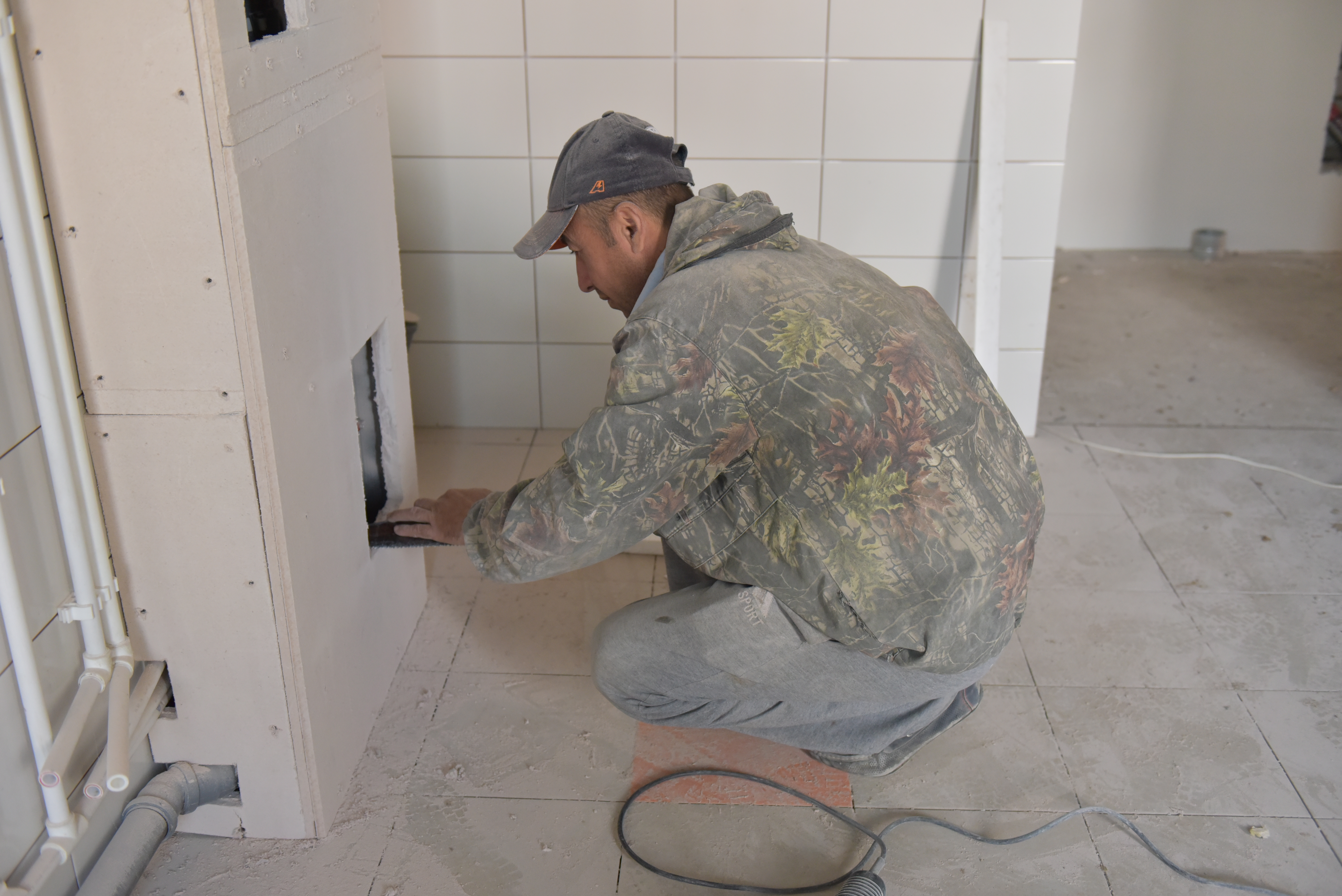- Здание детского сада состоит из четырех блоков – в некоторых уже выполнены отделочные, плиточные работы, висят радиаторы, то есть готовы приступить к финишной отделке – покраске и настилу линолеума.