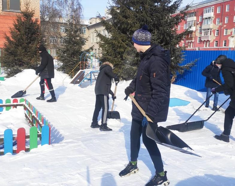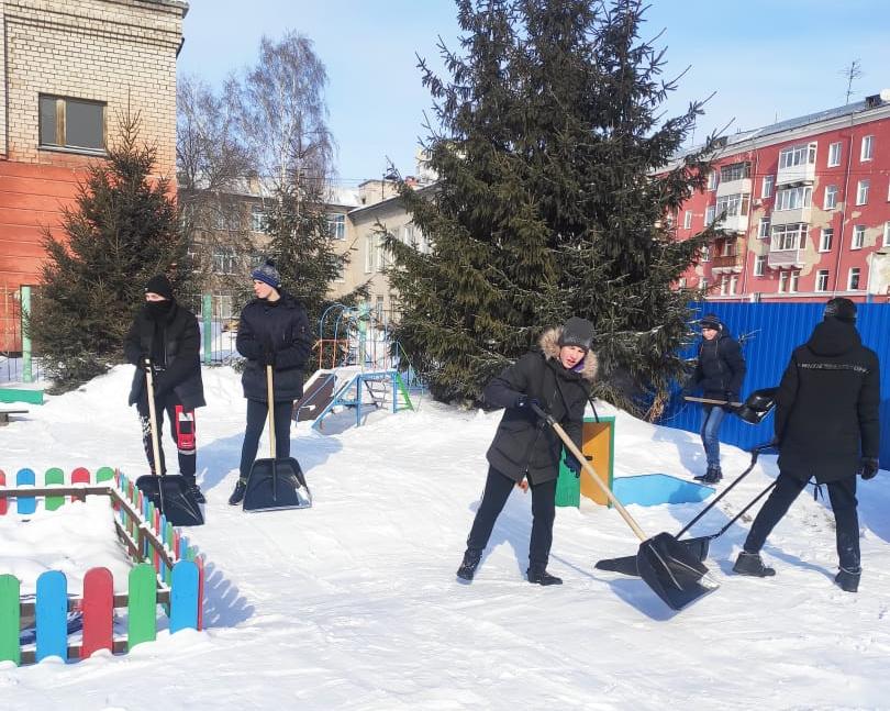 «Снежный штурм»: барнаульские волонтеры помогли расчистить от снега территории детских садов