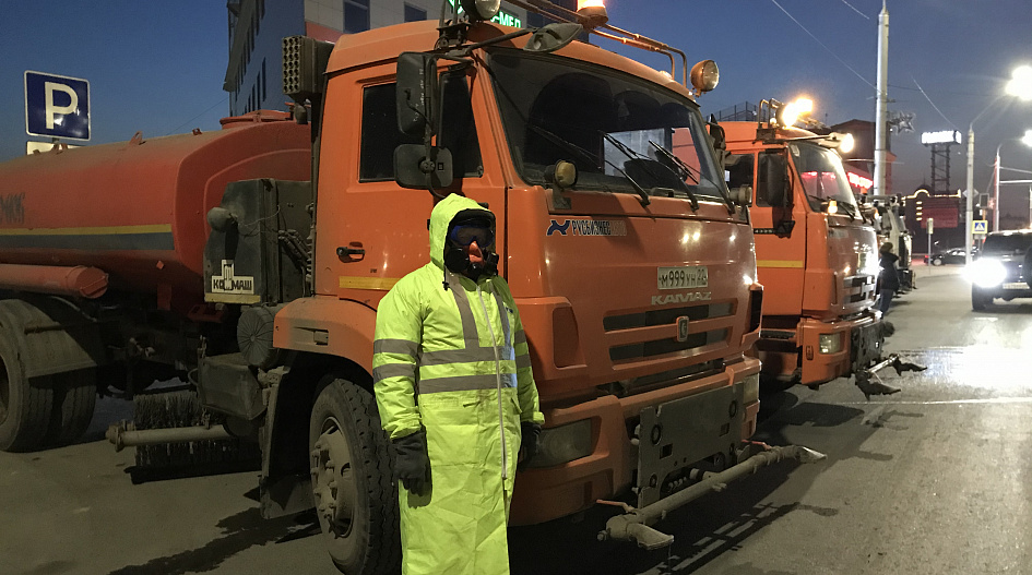 «Распределять раствор будут 12 поливомоечных машин, в случае необходимости количество можем увеличить в три раза. Сопровождение спецтехники сегодня осуществляет ГИБДД, помогает полиция, чтобы уберечь людей, ну и конечно присутствует лаборатория Центра гигиены и эпидемиологии для проведения отборов проб.