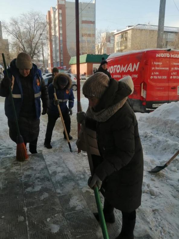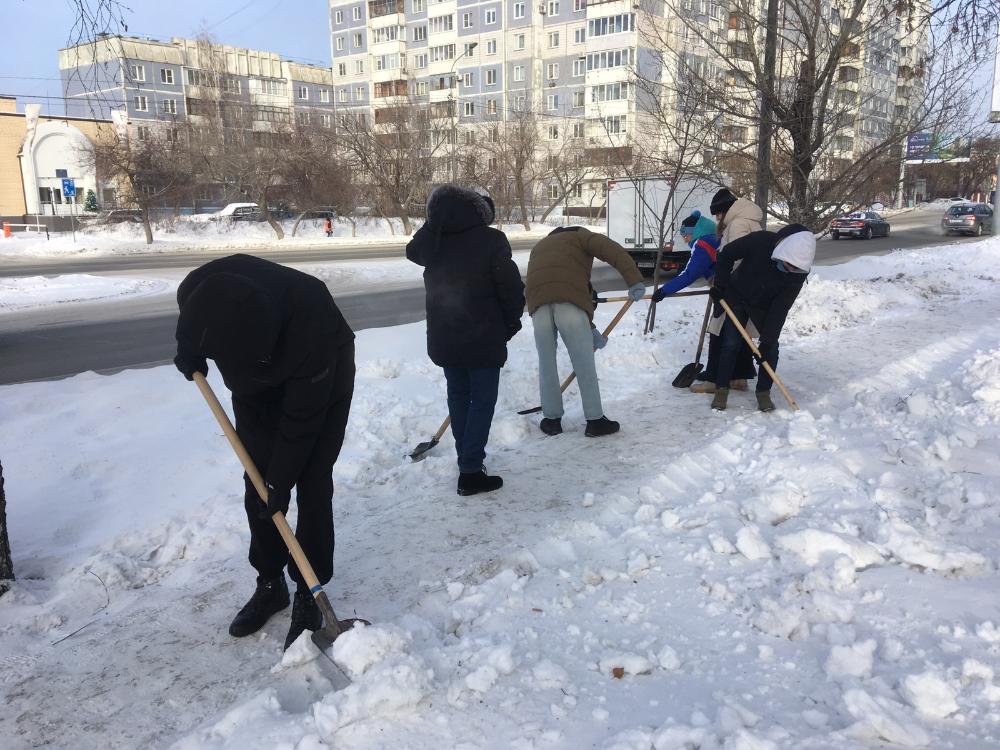 Тротуары и пешеходные зоны Железнодорожного района продолжают очищать от наледи. Активную борьбу по устранению гололеда ведут с помощью студентов барнаульских вузов и общественников.