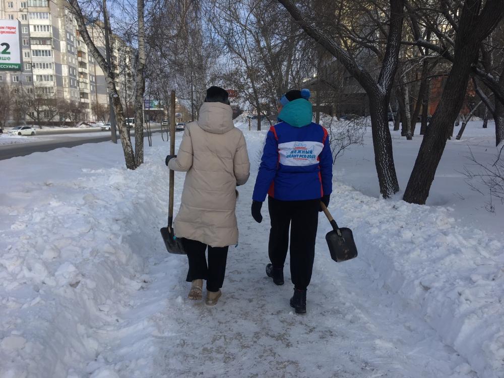 Поддержали намерение студентов и активисты ТОС Красноармейского микрорайона. Дружинники и активные жители освободили от снега участки улицы Крупской. Их примеру последовали общественники ТОС Локомотивного и Матросовского микрорайонов: вчера ими были очищены пешеходные дорожки по проспекту Коммунаров и улице Советской Армии. А жители ТОС Петровского микрорайона приступили к работам по устранению наледи и обработке песком территорию в районе домов 232 и 234 по улице Северо-Западной.