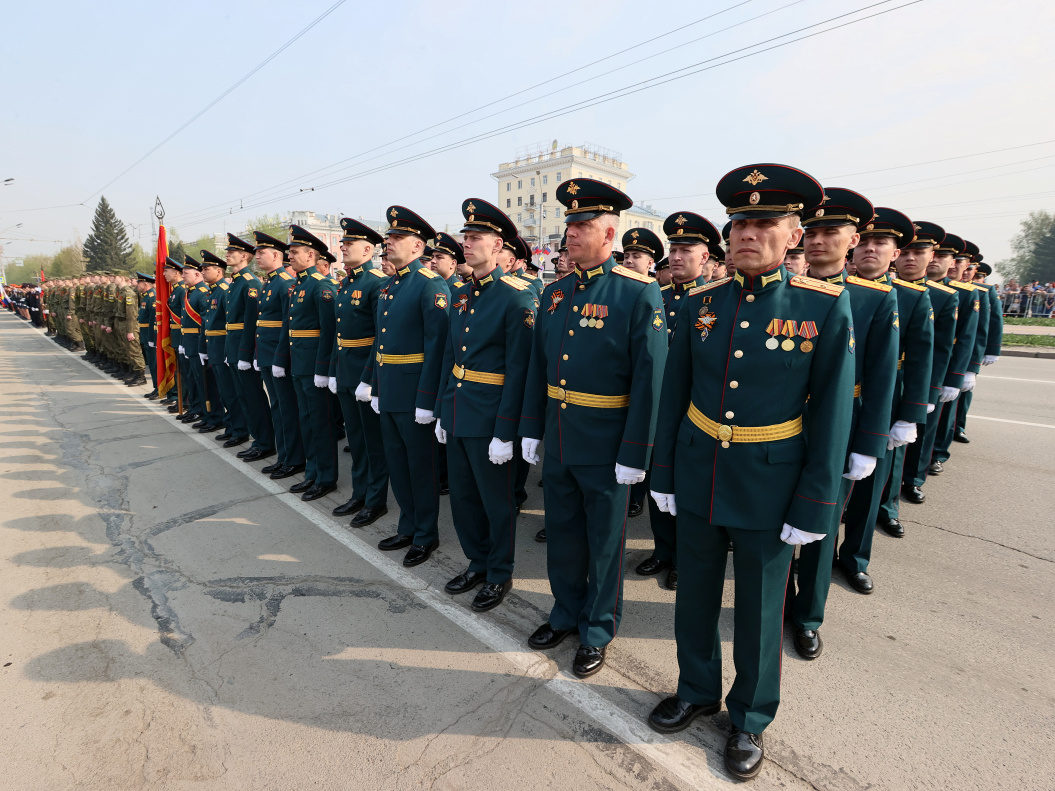 Парадом командует заместитель командира 35-й ракетной дивизии полковник Владимир Кульчихин. Принимает парад военный комиссар Алтайского края полковник Марат Усманов.