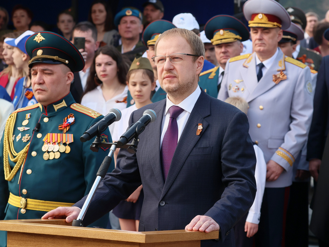 Минуту молчания мы объявляем в память обо всех, кто ценой своей жизни защитил Родину и её будущее. Сегодня мы вновь склоняем головы в память о дедах и прадедах, победивших в Великой Отечественной войне. В память о внуках и правнуках, которые в 21 веке не пожалели своей жизни, встав за интересы своей страны, своего народа. Вечная им память и Вечная Слава!», – такими словами Губернатор призвал присутствующих почтить минутой молчания павших воинов.