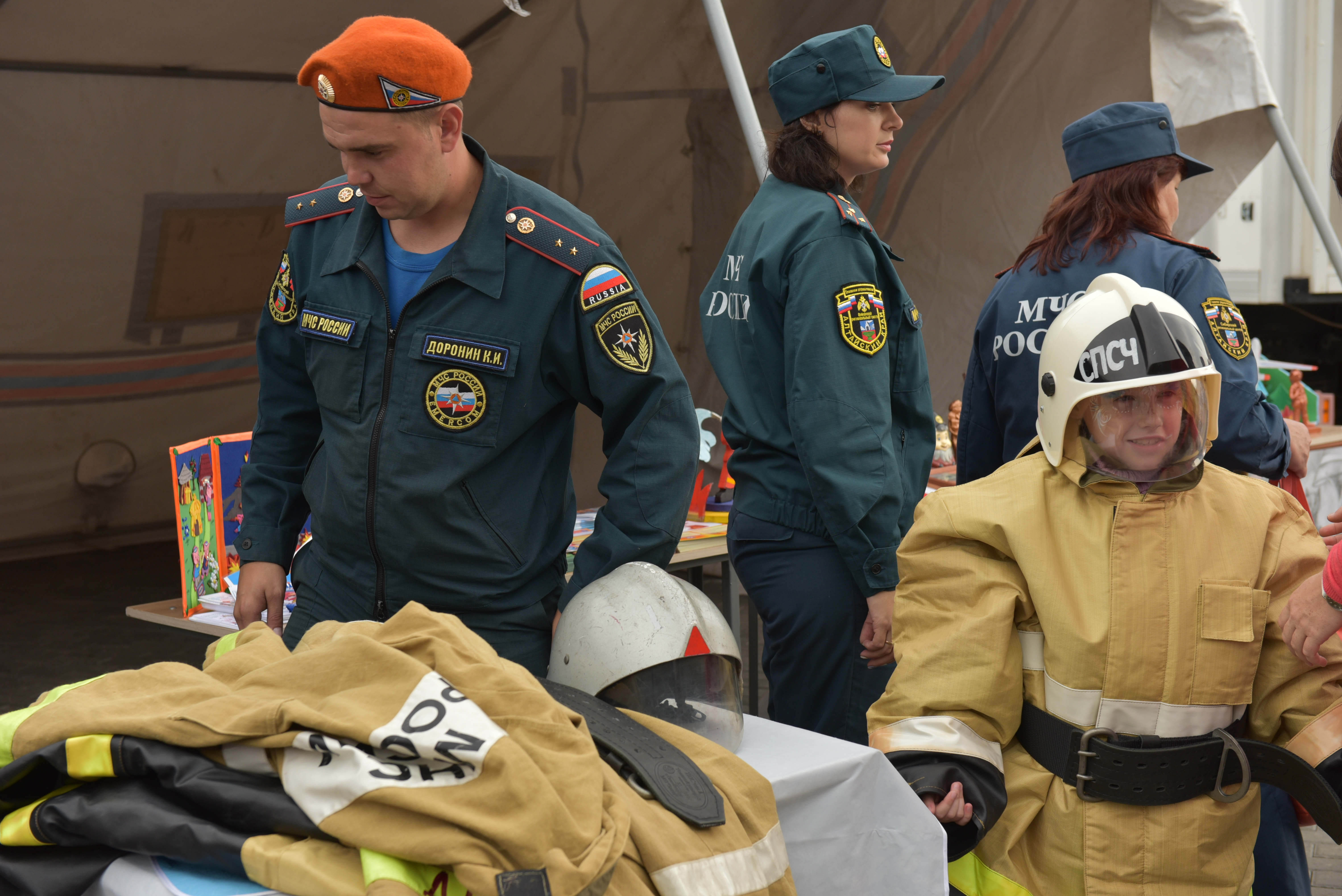 На входе на набережную барнаульцев встречали экспонаты выставки спецтехники МЧС. Современные автомобили, оборудованные всем необходимым для процесса пожаротушения, а также ретромобили вызывали особый восторг и интерес у юных горожан – технику можно было потрогать, посидеть в кабине, сфотографироваться с пожарным.