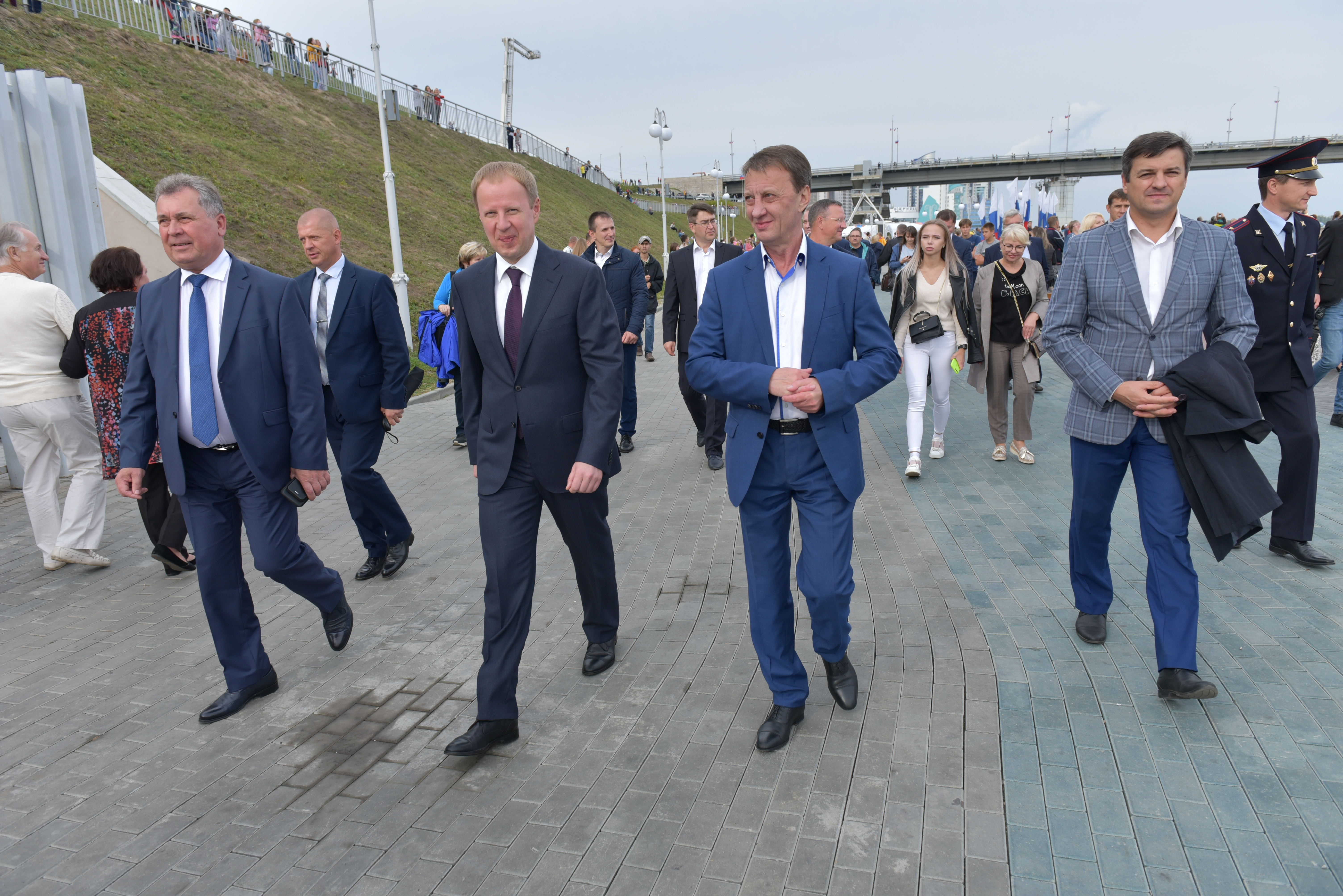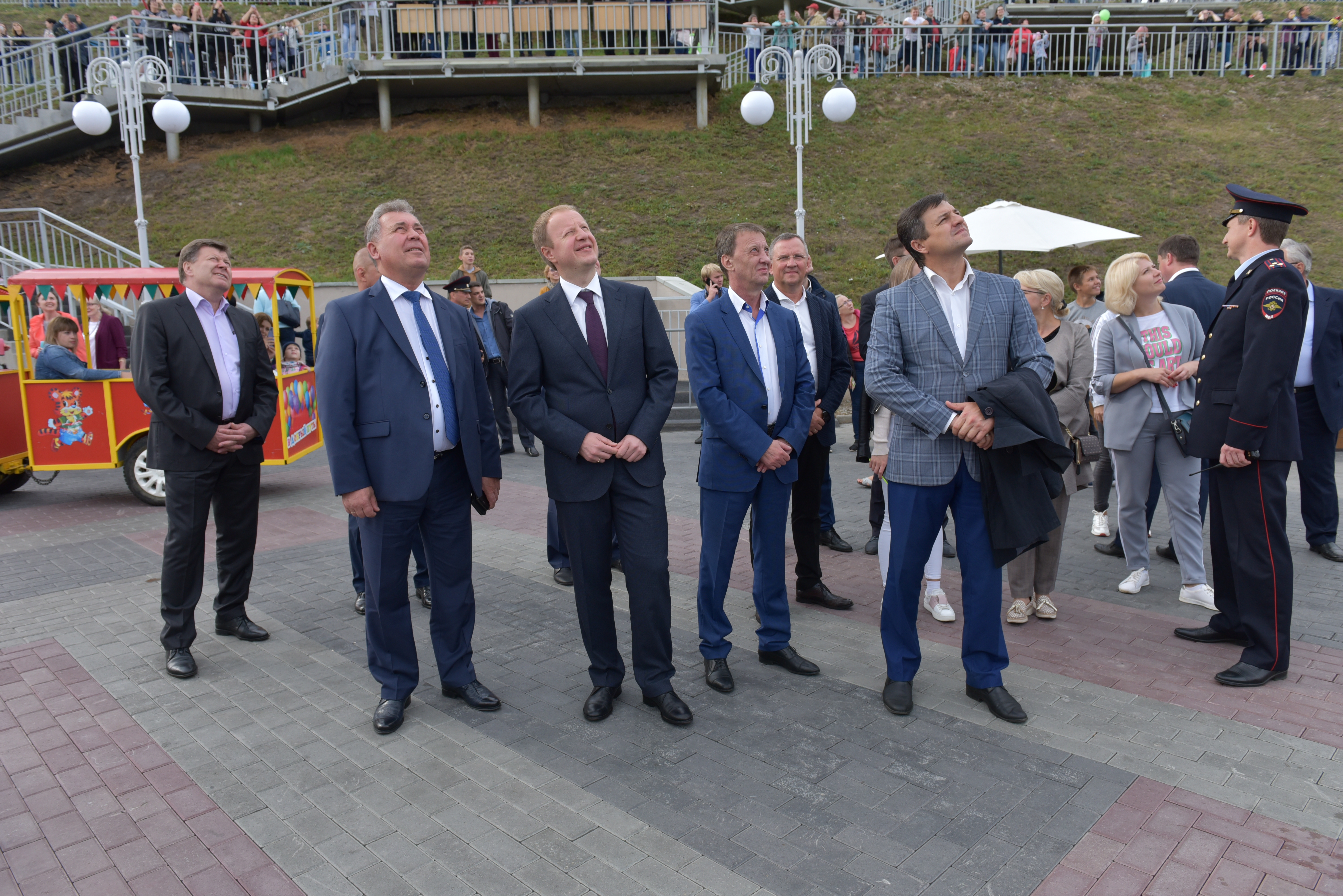 Руководители города и края пообщались с барнаульцами и гостями Барнаула, поздравили другу друга с Днем города, обменялись впечатлениями о праздничных мероприятиях. Виктор Томенко охотно и доброжелательно фотографировался с барнаульцами, горожане в свою очередь желали Губернатору успехов работе и процветания краю и его столице. Виктор Томенко и сопровождающие его руководители поднялись по лестнице в Нагорный парк, прошли по его аллеям и переместились в парк культуры и отдыха «Центральный».