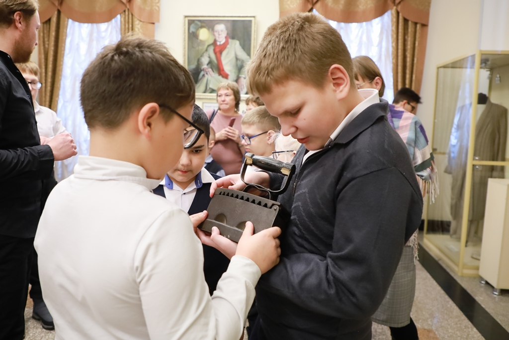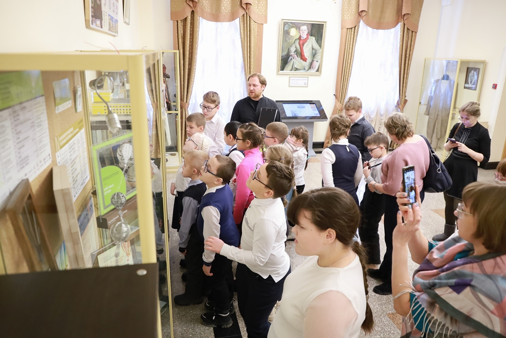 На экскурсии школьникам рассказали, как театр выглядит снаружи и изнутри, подробно описали цвета, использованные при реконструкции здания материалы, красоту люстр, зрительских кресел, другие особенности интерьера. Они узнали о знаковых событиях, которые происходили в истории МТА, о народном артисте России Валерии Золотухине, его роли в развитии театра.