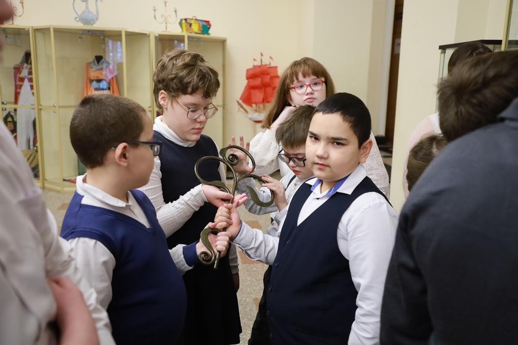 Но самым любопытным стало, конечно, тактильное знакомство с Молодежным. Дети своими руками изучили некоторые экспонаты, расположенные в музее театра, и смогли получить представление об экспозиции. Так они узнали о людях, работающих в МТА: бутафоры, сотрудники пошивочного цеха, костюмеры и так далее. Группе повезло – во время посещения большого зрительного зала на сцене шла подготовка декораций к премьерному спектаклю «Сказка о спящей Царевне» Александра Пушкина. Так они познакомились со столярным и монтировочным цехами. А после подробно расспрашивали о звуковом и световом.