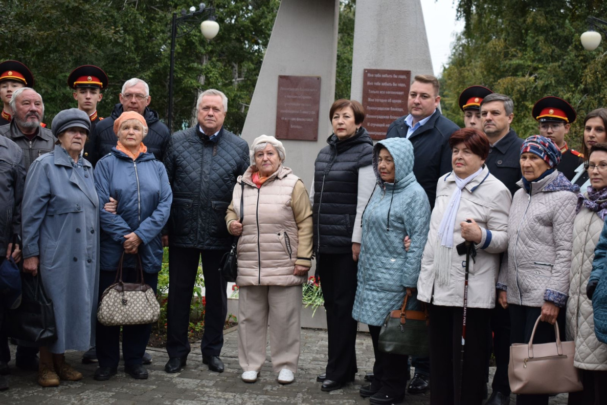 Цветы возложили к памятному знаку, установленному на Ленинградской аллее, который посвящен ленинградцам-блокадникам и воинам-сибирякам, участникам полного освобождения Ленинграда от немецко-фашистской блокады. Этот знак представляет собой символический метроном, громкоговоритель и разорванное металлическое кольцо, установленные на массивном бетонном основании.