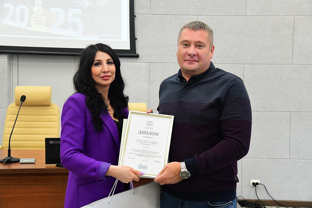 Накануне в администрации города Барнаула состоялось торжественное награждение победителей ежегодного конкурса «Лучшее новогоднее оформление предприятий промышленности и потребительского рынка – 2025». Председатель комитета по развитию предпринимательства, потребительскому рынку и вопросам труда администрации города Наталья Кротова вручила дипломы участникам встречи и поблагодарила от имени главы города Вячеслава Франка за создание праздничной новогодней атмосферы на территории Барнаула.