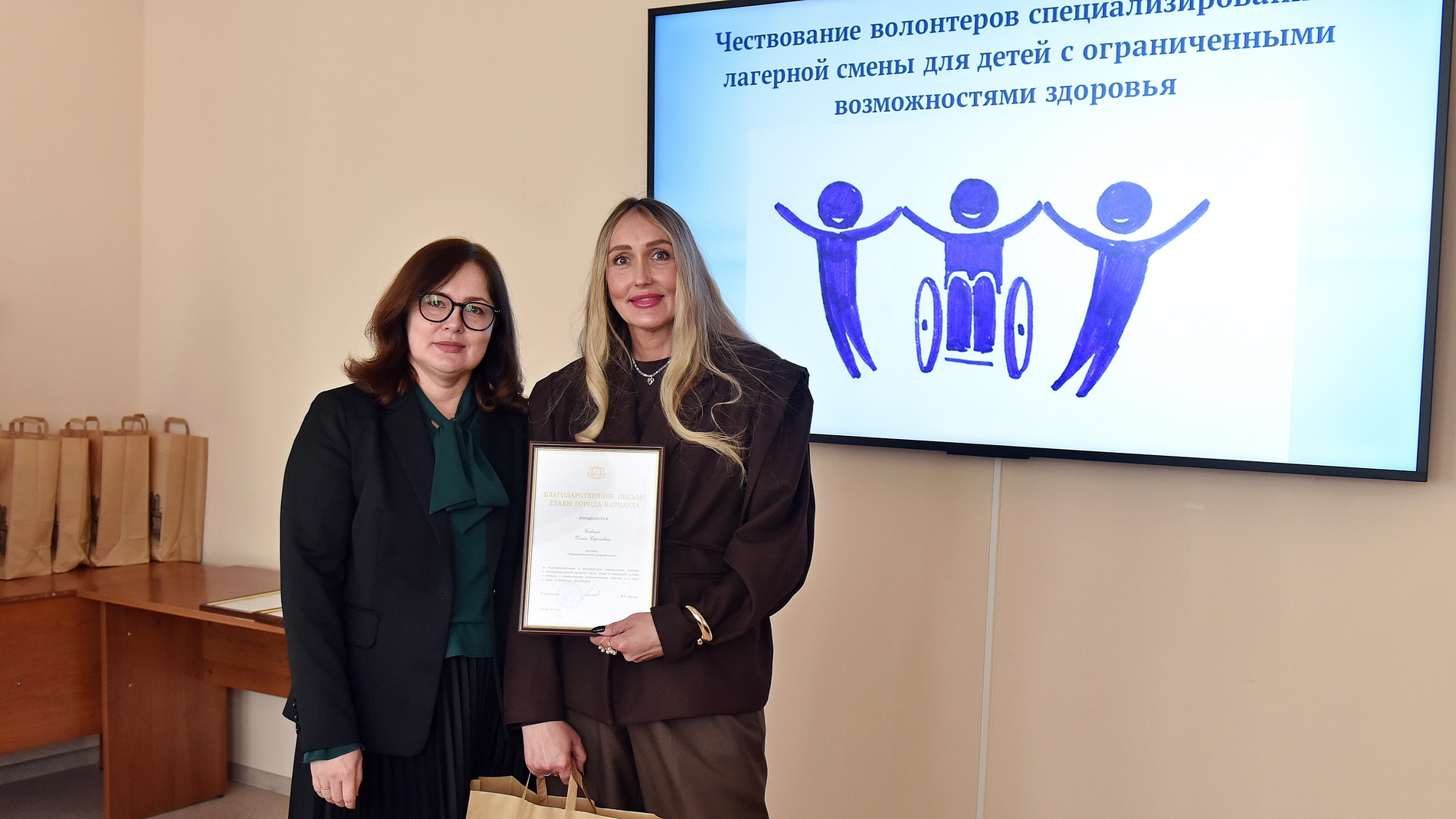Татьяна Королева, председатель комитета по социальной поддержке населения города Барнаула, поблагодарила волонтеров за их труд и ту радость, что они дарят особенным детям.