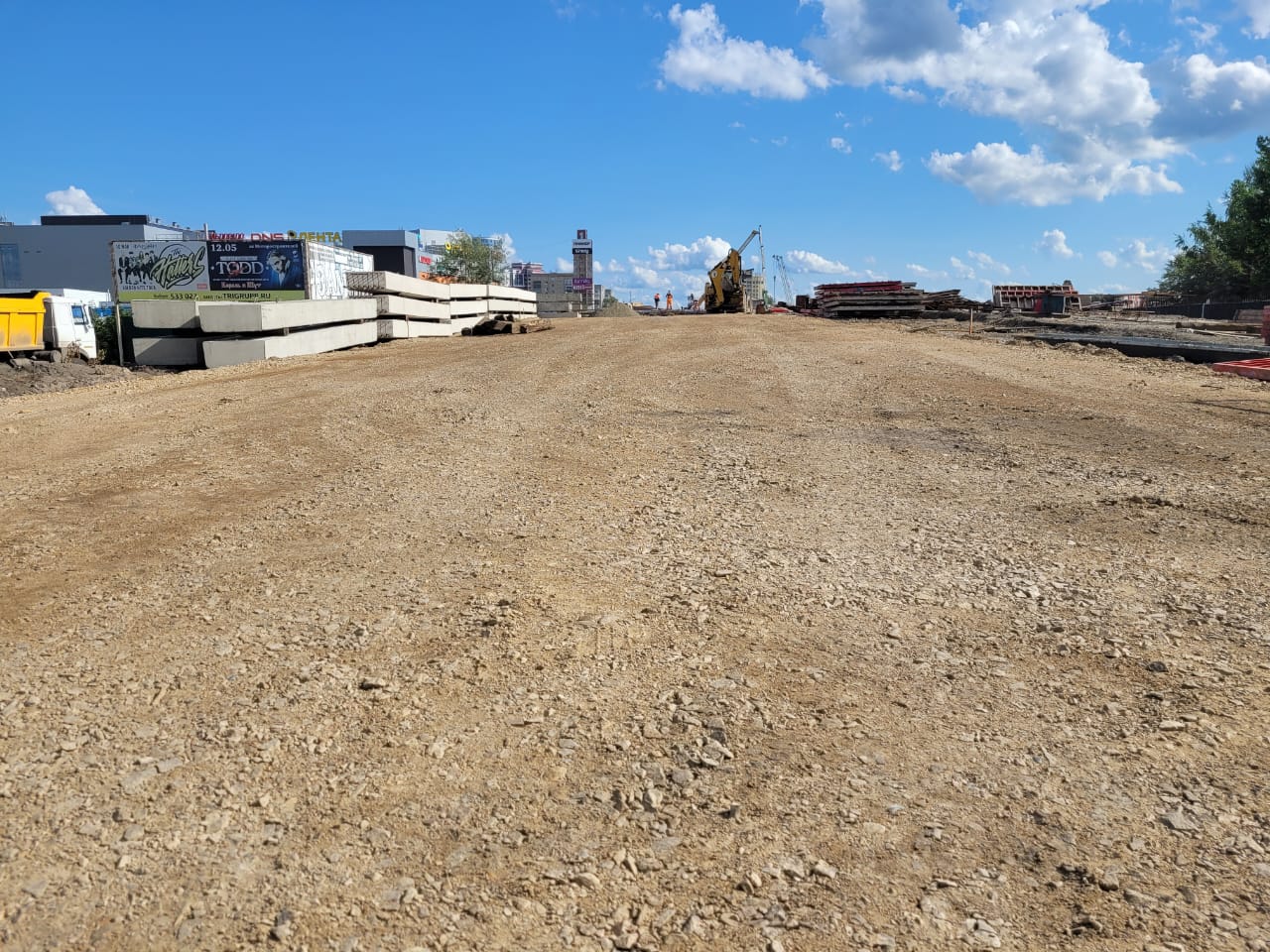 На малом путепроводе поверх уложенных балок залили выравнивающий слой бетона, сейчас он набирает прочность. Затем будет сделано устройство гидроизоляции – это последний вид работ перед началом укладки асфальта. Здесь же выполняют устройство откосных крыльев и сопряжения моста с насыпью. На подъездах к мосту ведутся земляные работы.