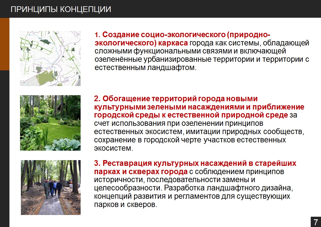 «Мы должны рассматривать развитие города таким образом, чтобы зеленая зона была в шаговой доступности от места проживания. И в концепции все это правильно отражено. Также необходимо выстраивать взаимодействие с предприятиями, общественными организациями, житиями частного сектора, чтобы комплексно решить этот вопрос. Все это необходимо предусмотреть при формировании дальнейших программ».