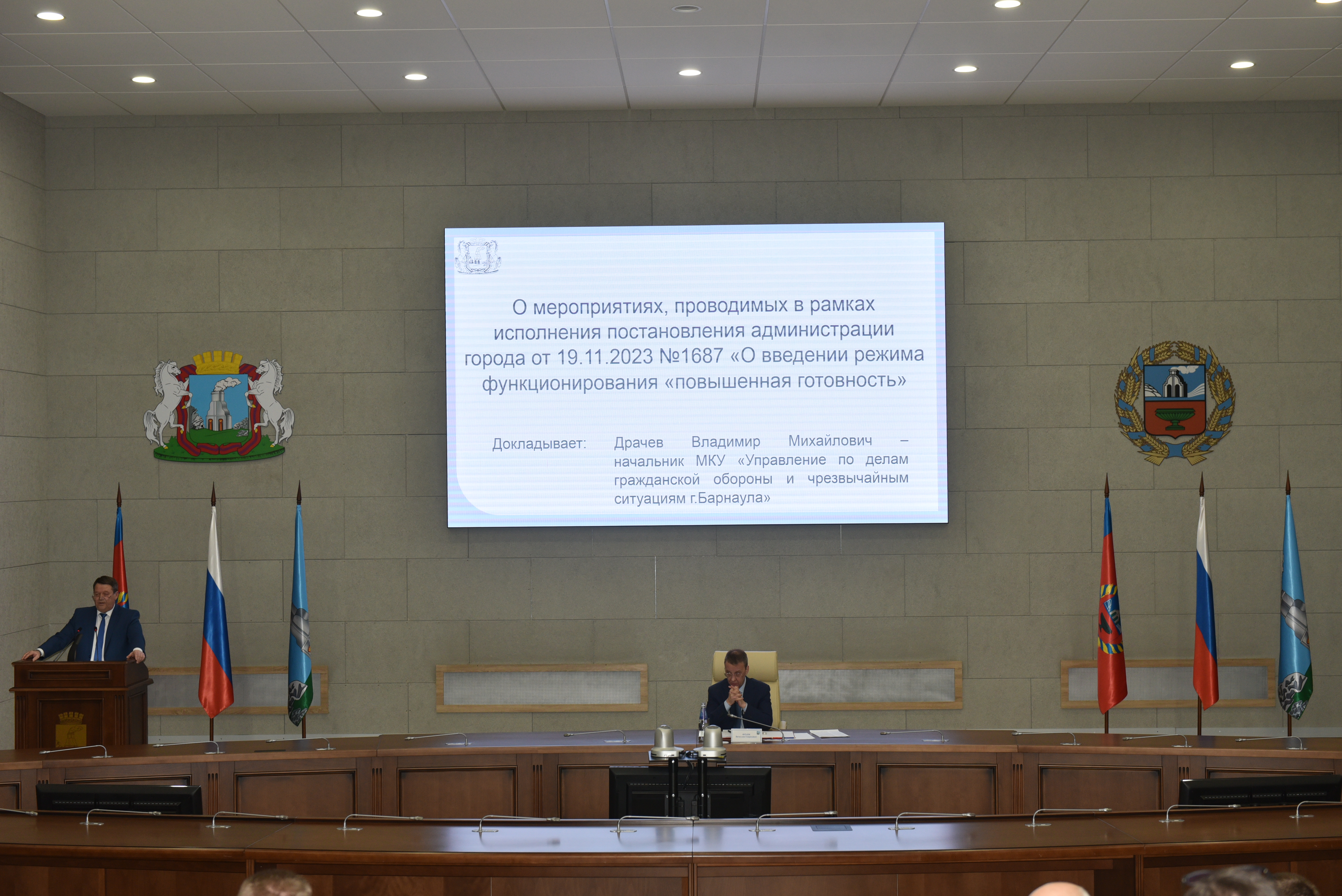 Его провел глава города Вячеслав Франк. В аппаратном совещании приняли участие председатель Барнаульской городской Думы Галина Буевич, заместители главы администрации города, представители районных администраций, руководители профильных комитетов, ресурсоснабжающих предприятий, Роспотребнадзора, полиции и др.