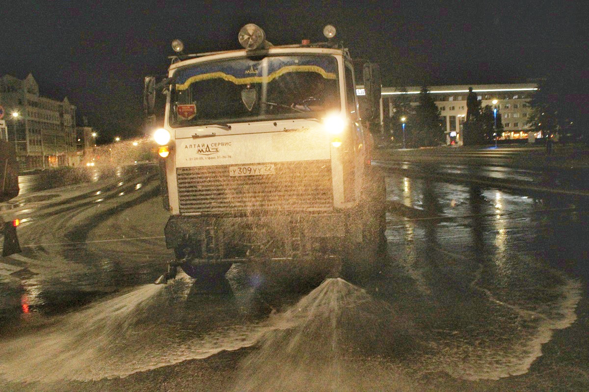 Сегодня в ночь с 7 на 8 июня коммунально-дорожные машины помыли дорожные участки на площадях Баварина, Советов, Октября, Сахарова, по проспекту Ленина, Социалистическому, Красноармейскому и Строителей, по улицам Молодежная, Челюскинцев, Аванесова, а также на Павловском и Змеиногорском трактах.