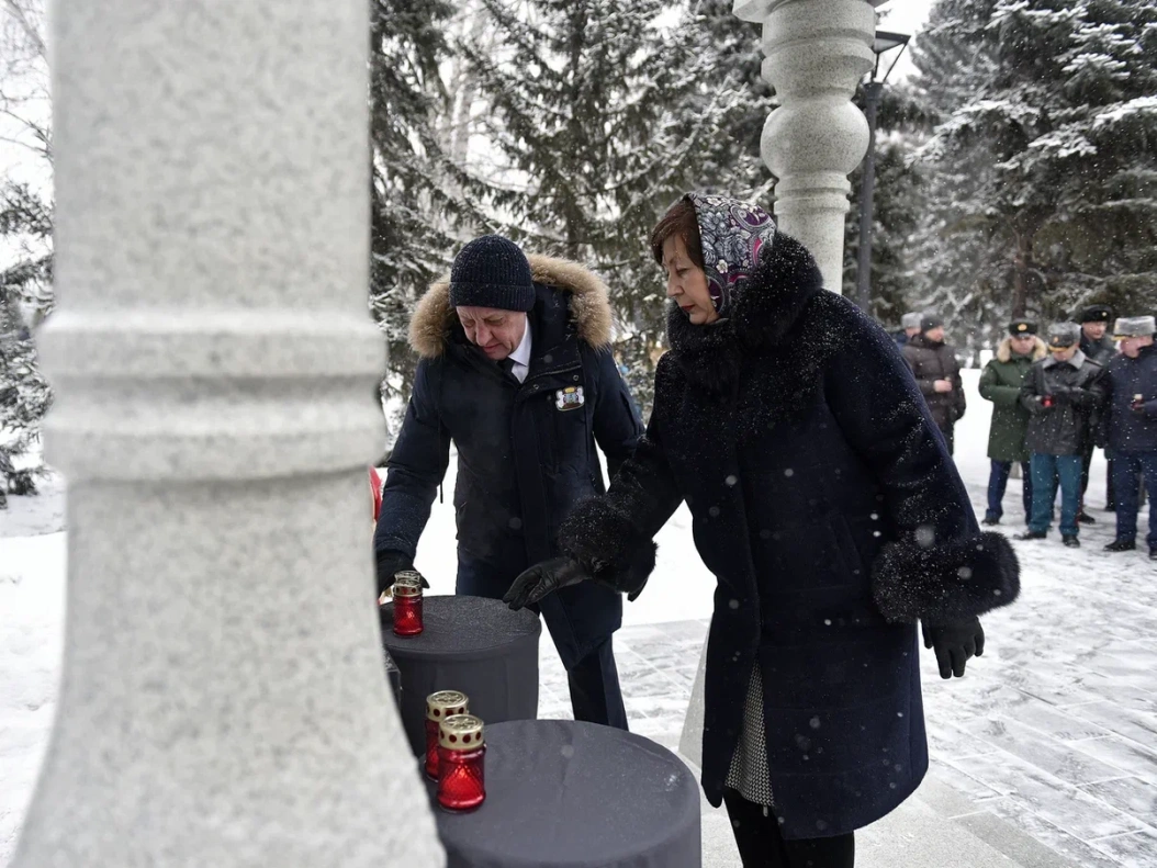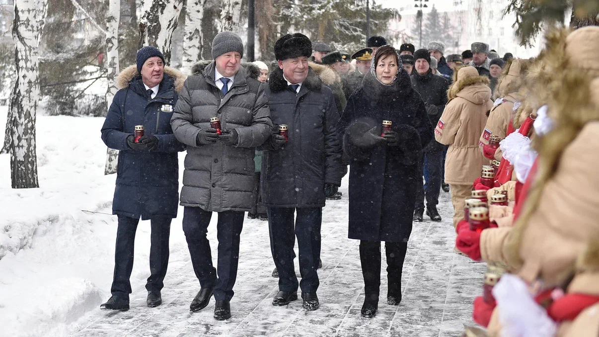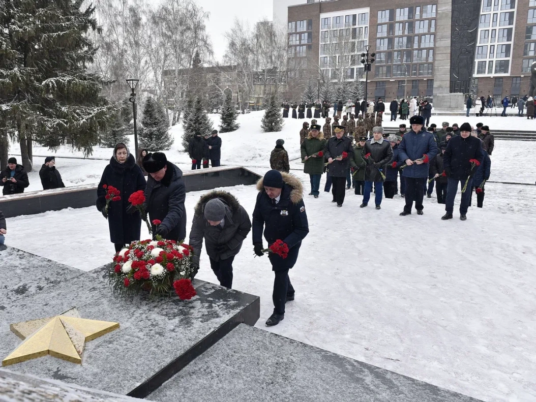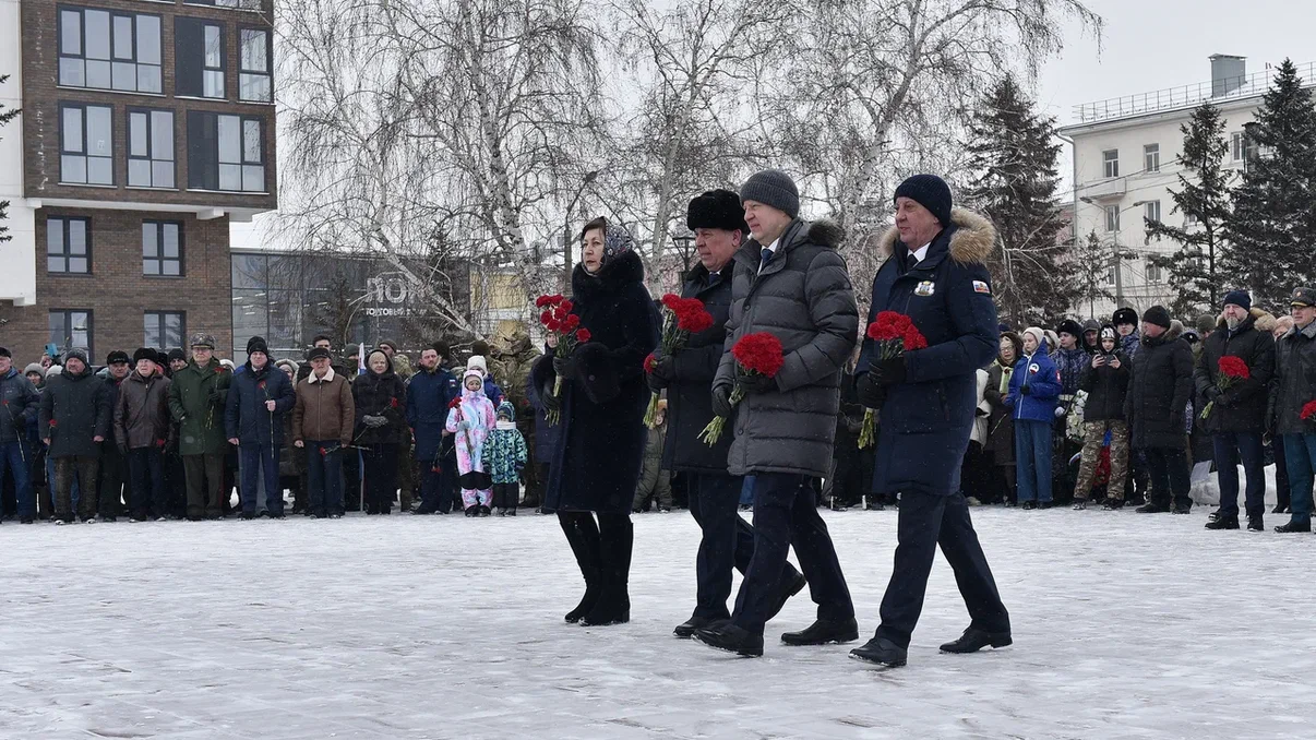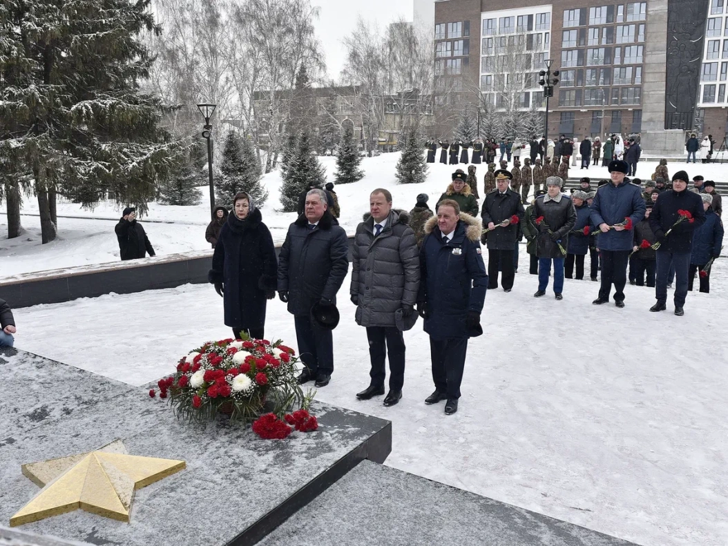 Сегодня, 23 февраля, в Барнауле состоялось торжественное возложение цветов к Мемориалу славы в честь Дня защитника Отечества.