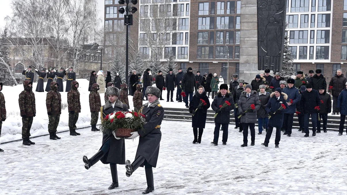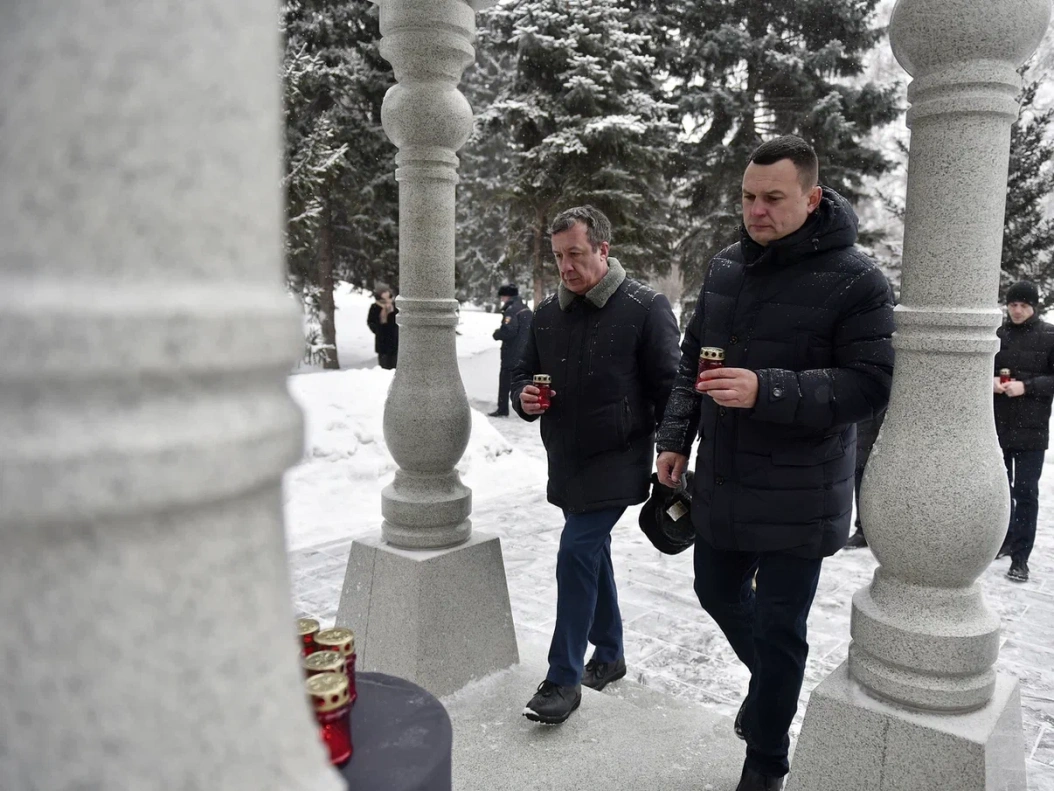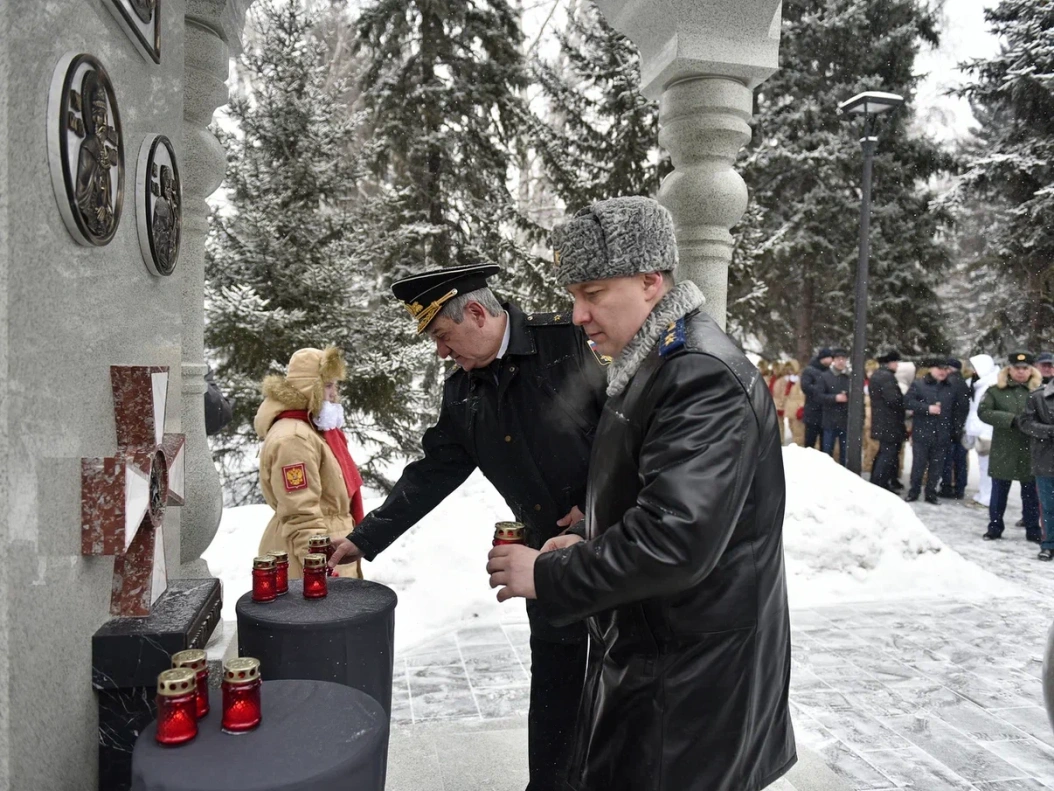 Участники церемонии почтили память погибших героев, возложив цветы к скульптурной группе «Прощание», монументу кавалеров орденов Славы и «Золотая Звезда», а также к пантеону с именами павших воинов.