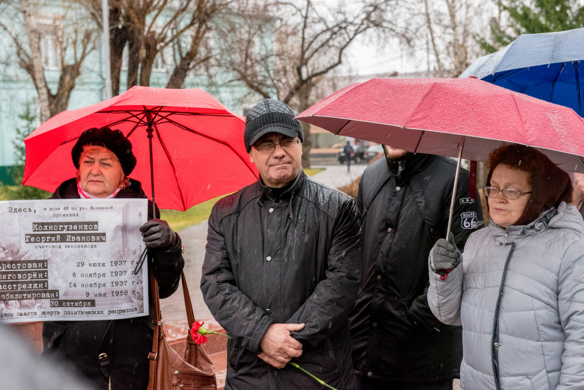 Собравшиеся почтили память погибших минутой молчания и возложили цветы к памятнику. Потомки жертв политических репрессий рассказали о своих отцах и дедах, пострадавших в те годы.