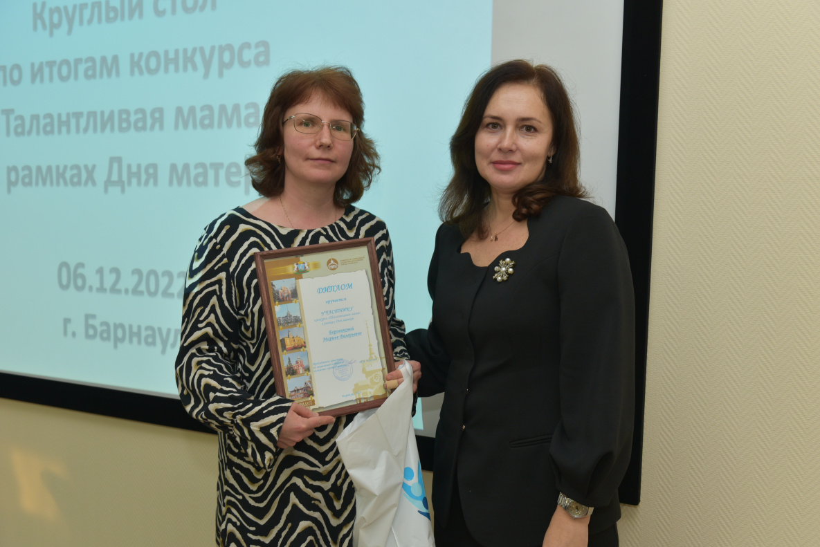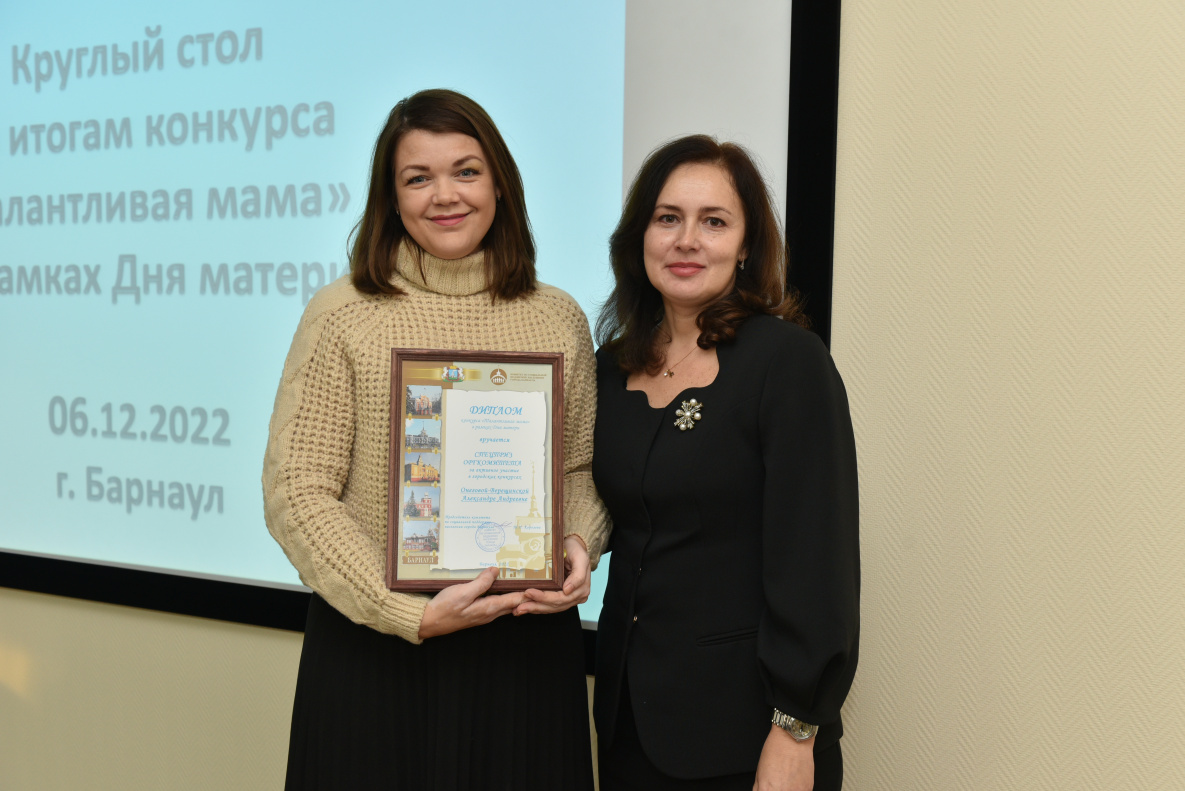 Конкурс «Талантливая мама» проводился в Барнауле впервые, как отметила председатель комитета по социальной поддержке населения Татьяна Королёва, в первую очередь жюри состязания оценивало не степень таланта каждой из мам, а оригинальность подачи видеопрезентации. Уровень работ был очень высоким. В итоге награды разного уровня получили 16 участниц состязания.
