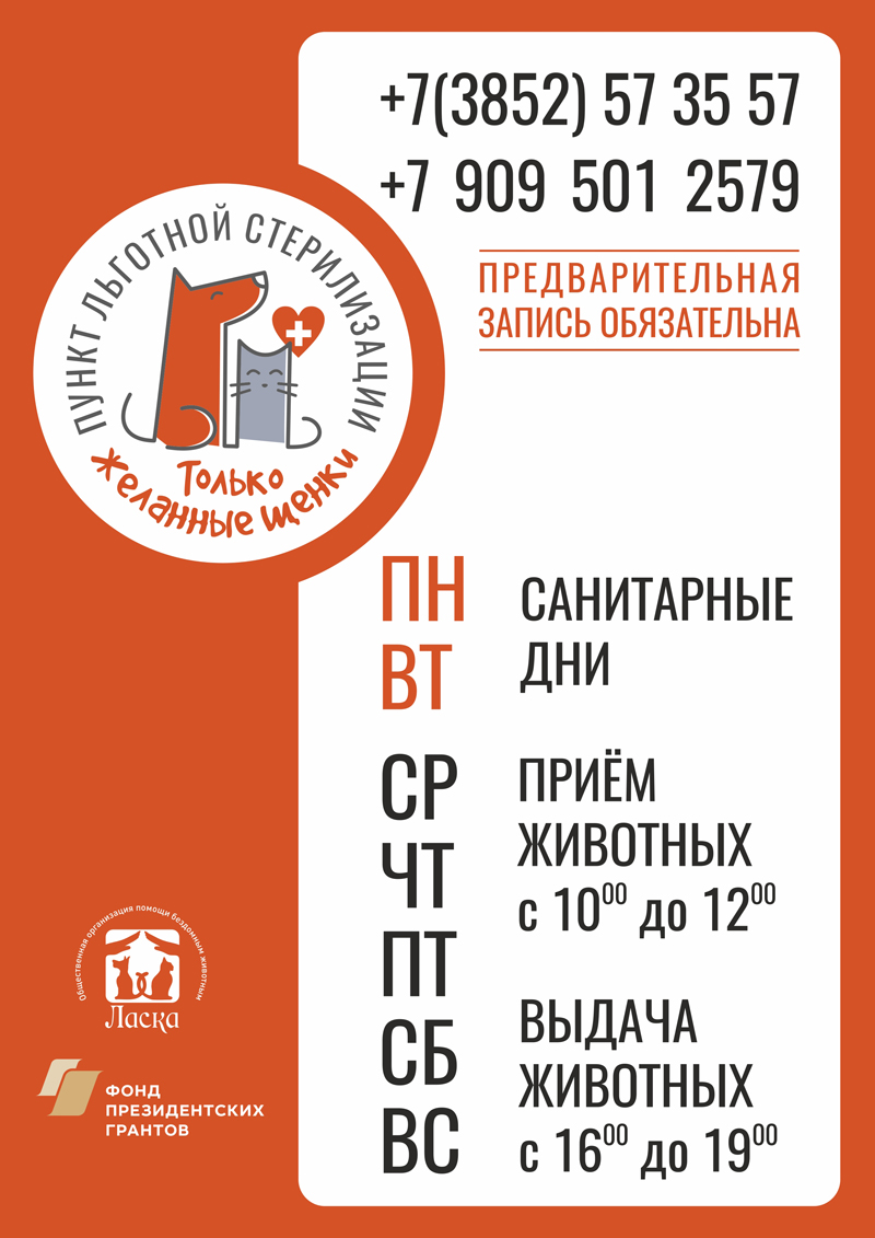 Как рассказали в приюте, реализация проекта «Пункт бесплатной (в последующем - льготной) стерилизации «Только желанные щенки» длилась 14 месяцев. На первом этапе в здании, предоставленном администрацией Барнаула, были проведены ремонтно-строительные работы по созданию пункта, включая не только операционный блок, но и стационар для кошек и собак. С июля пункт начал работу по стерилизации животных по заявкам жителей года и края. По итогам 2020 года на средства гранта проведено 1045 стерилизаций и кастраций.