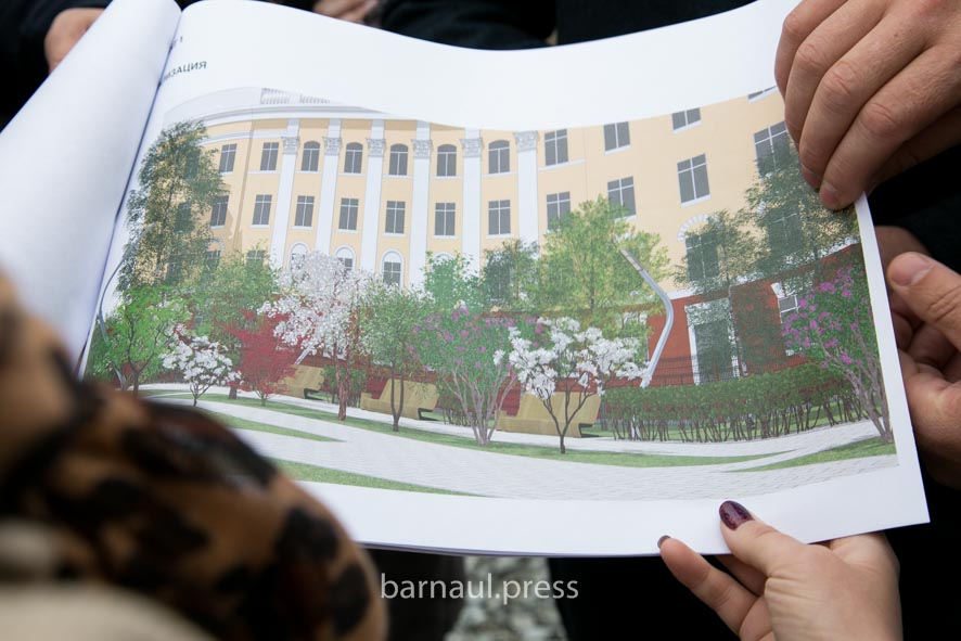В обсуждении проекта будущего сквера также приняли участие заместитель главы администрации города по дорожному хозяйству и транспорту Антон Шеломенцев, председатель городского комитета по дорожному хозяйству, благоустройству, транспорту и связи Иван Гармат, глава администрации Центрального района Максим Сабына, ректор Алтайского государственного медицинского университета Ирина Шереметьева, депутаты Барнаульской городской Думы, дизайнеры, архитекторы и другие заинтересованные специалисты.