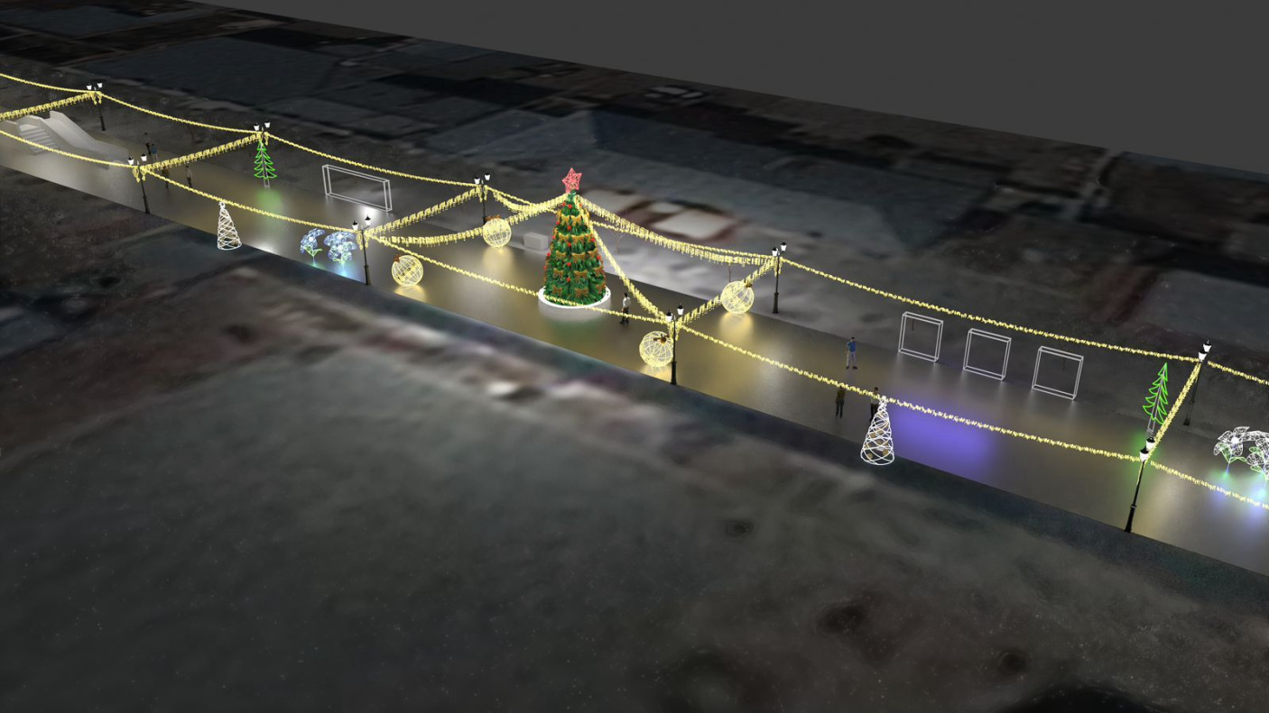 В настоящее время на пешеходной зоне занимаются монтажом бахромы и двух детских горок. В самое ближайшее время рабочие начнут устанавливать шестиметровую искусственную ель. Зелёная красавица будет украшена большими бантами и шарами