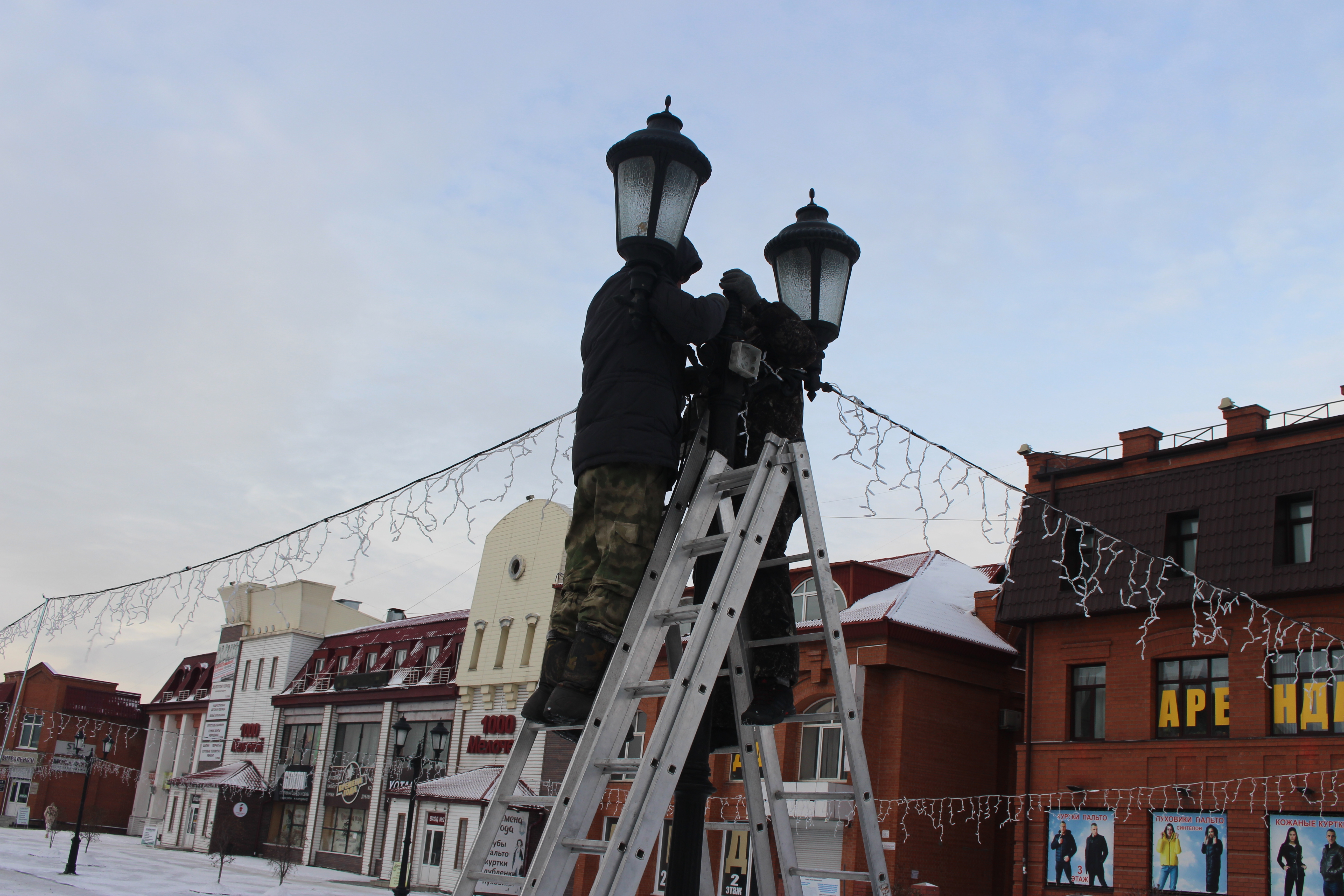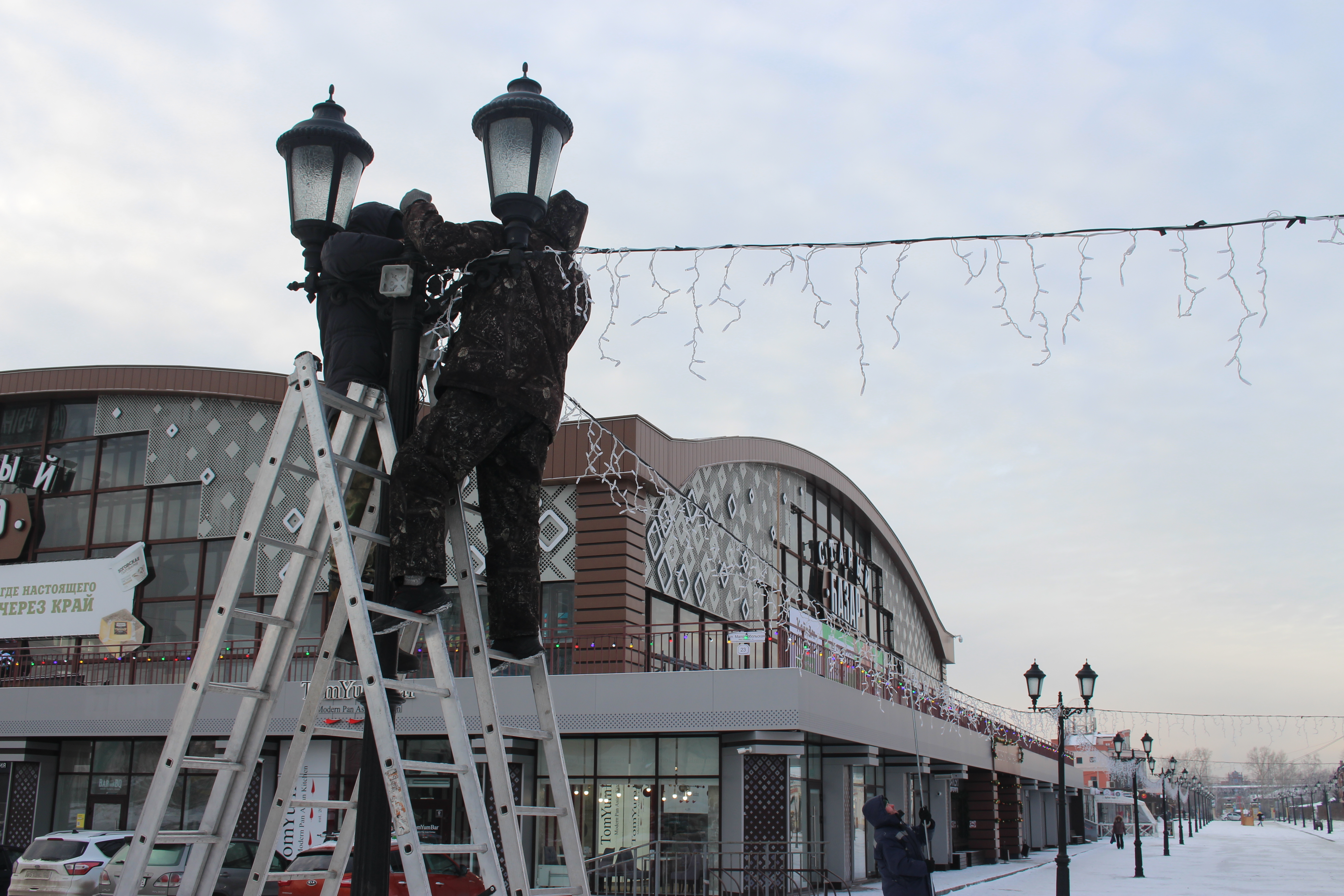 В настоящее время на пешеходной зоне занимаются монтажом бахромы и двух детских горок. В самое ближайшее время рабочие начнут устанавливать шестиметровую искусственную ель. Зелёная красавица будет украшена большими бантами и шарами