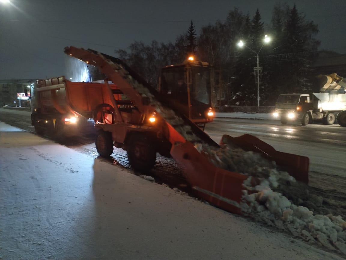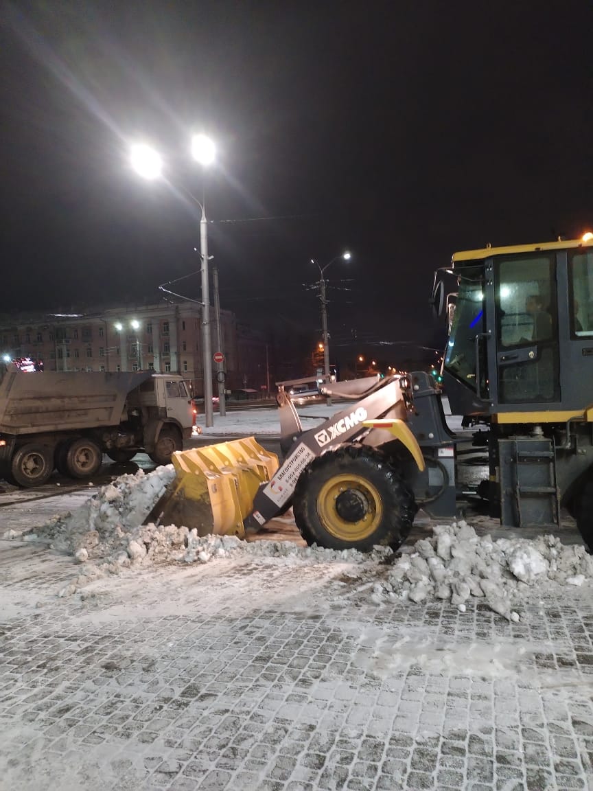 Кроме того, ночью дорожники вывозили снежные валы с площади Сахарова и площади Победы, с проспектов Ленина, Строителей, Калинина, Комсомольского, с улицы Кулагина и других участков.