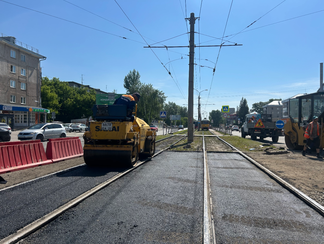 На ул. Малахова от ул. Сухэ Батора до ул. Антона Петрова в настоящее время проходит укладка верхнего слоя асфальтобетонного покрытия.