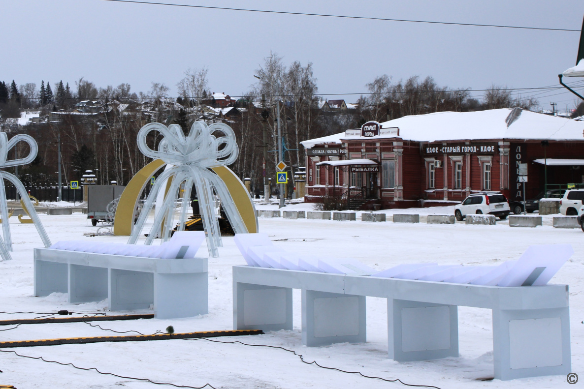 В ближайшие дни у входа на новогоднюю площадку со стороны проспекта Ленина установят световую конструкцию «Русский кокошник», сделают фотозоны с изображением героев русских сказок, а также детские горки.