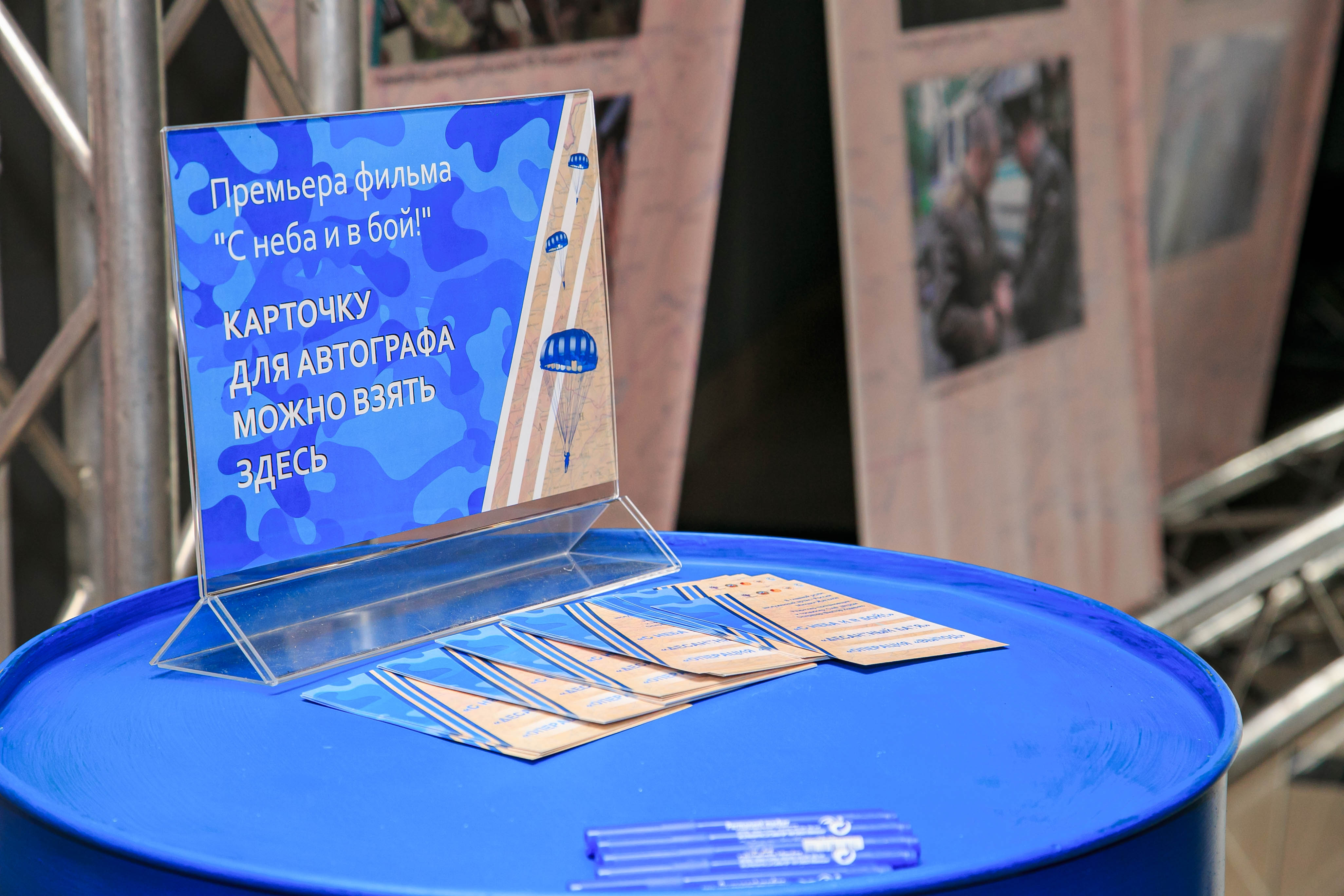 Премьерный показ фильма «С неба и в бой» состоялся при поддержке Фонда «Защитники Отечества» имени Владимира Шаманова. В нем приняли участие Губернатор края Виктор Томенко, Герой РФ, председатель комитета ГосДумы РФ по обороне Владимир Шаманов, делегация Героев Советского Союза и Российской Федерации, глава города Барнаула Вячеслав Франк, режиссер фильма Олег Штром, актер-исполнитель главной роли Михаил Жигалов и другие. Фильм создан кинокомпанией «ФильмОКей» при поддержке Российской Ассоциации Героев