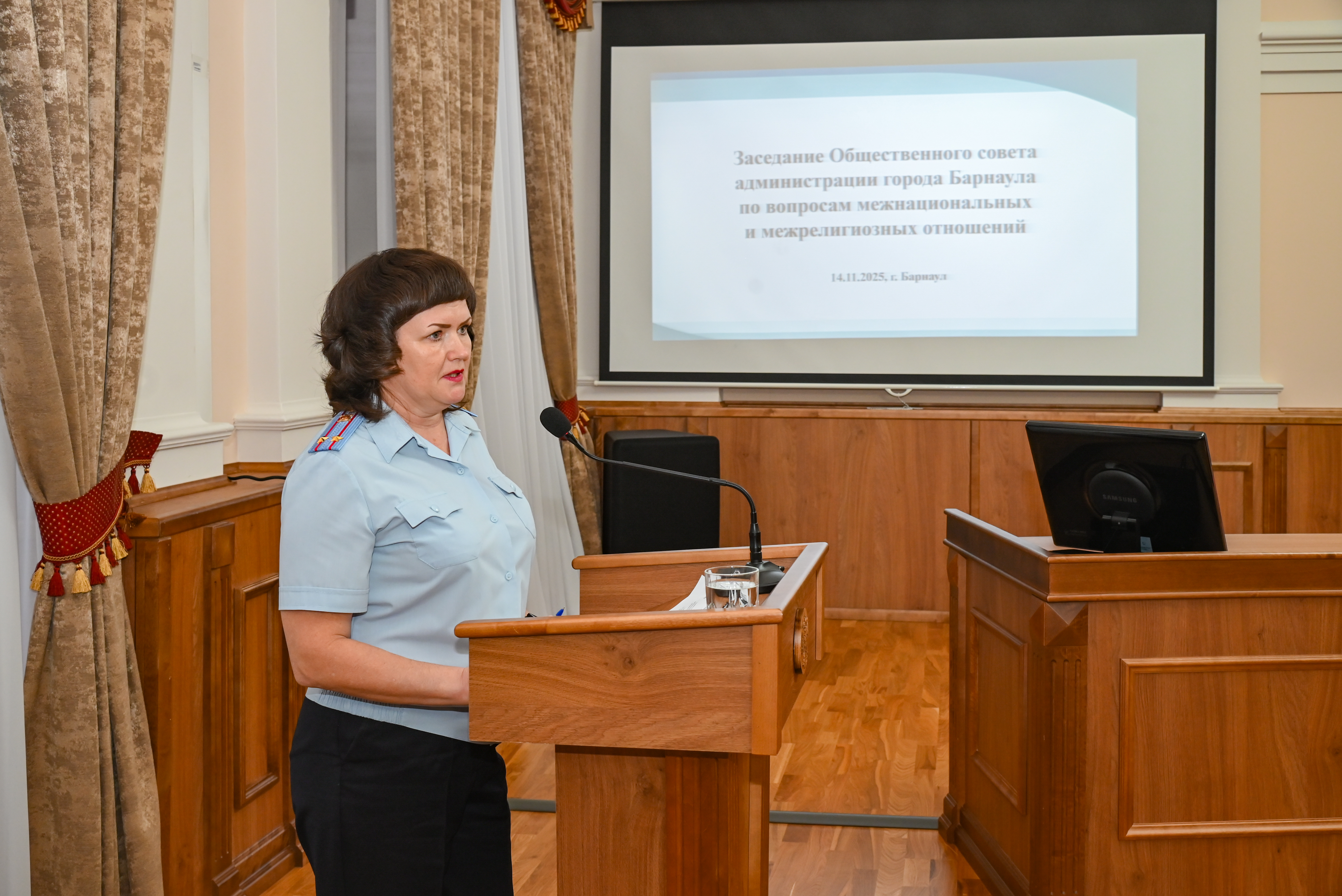 Повестка очередного заседания была посвящена вопросам миграционной политики. С докладом выступила Надежда Венцель, заместитель начальника отдела по вопросам миграции УМВД России по Барнаулу.