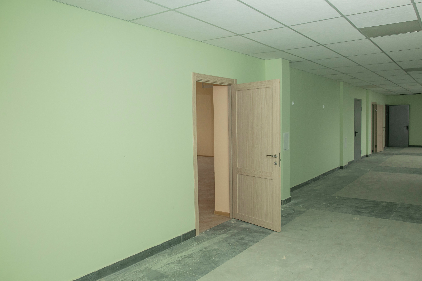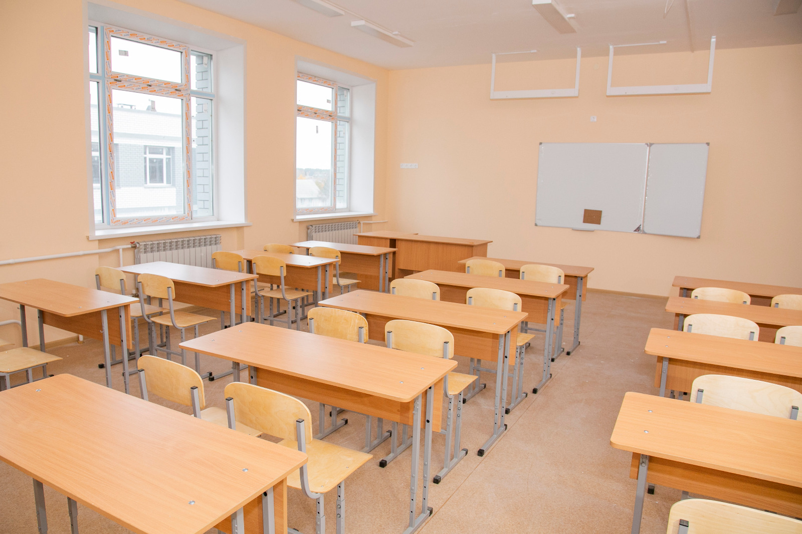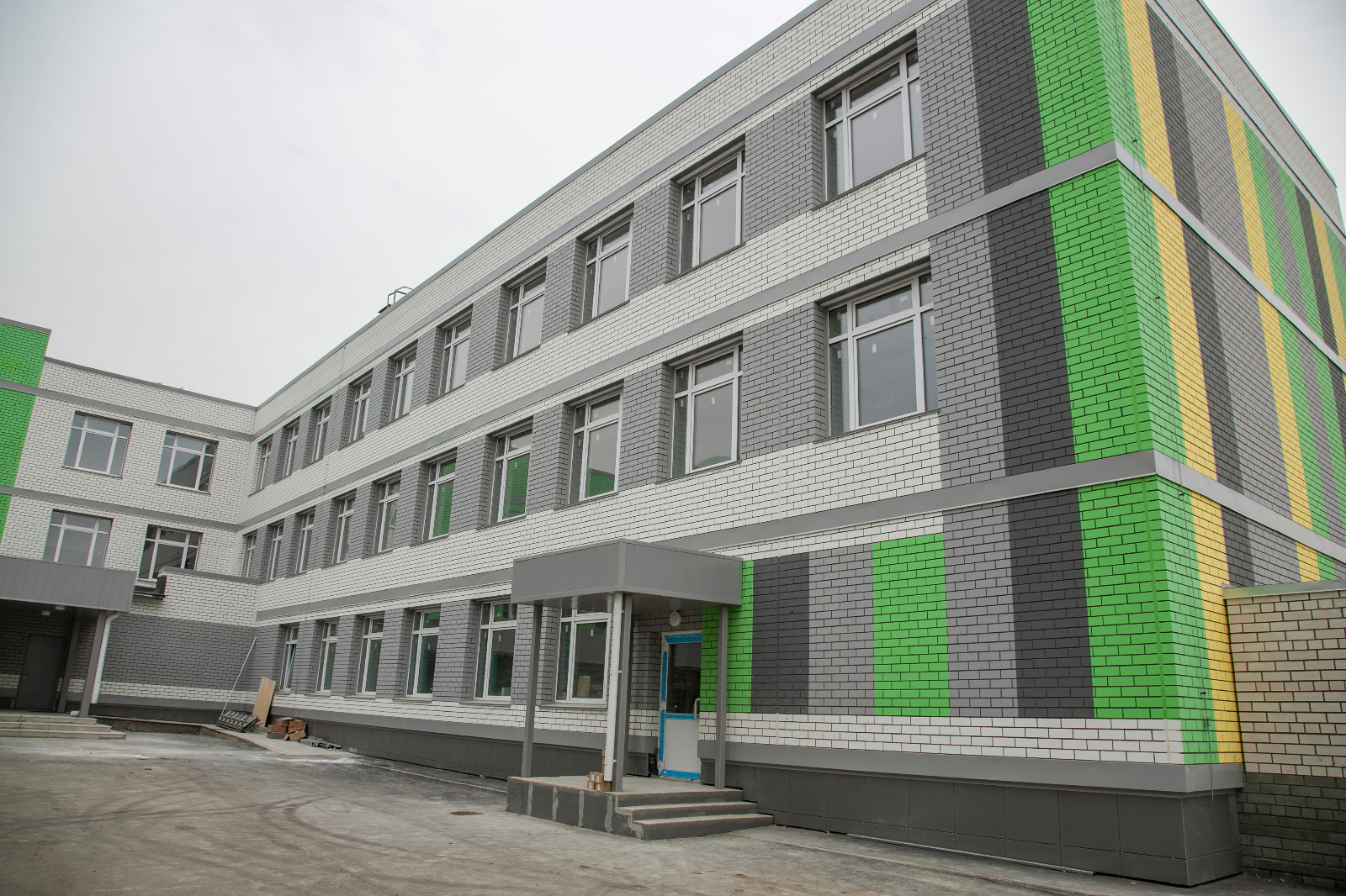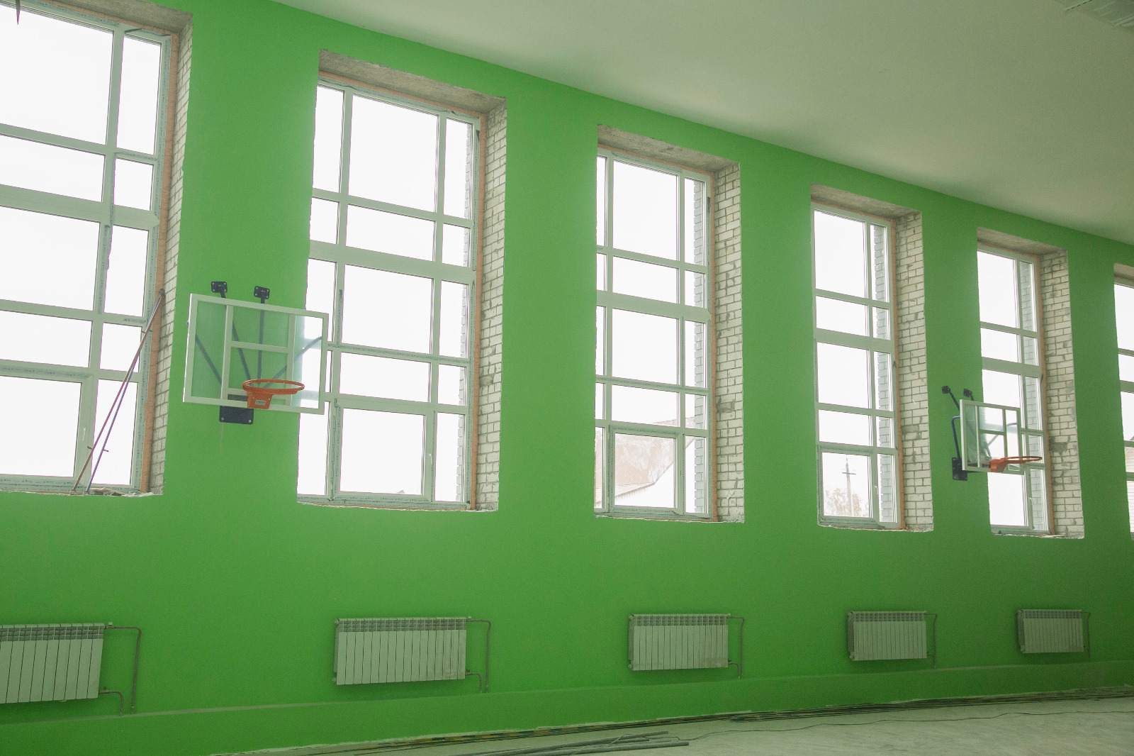 «Осталось завершить работы по устройству резинового покрытия на спортивной площадке за выходные эти работы планируем полностью завершить. На третьем этаже работы уже завершены, на втором этаже 95% готовность. Практически готов спортивный зал, здесь идет устройство полов и монтаж спортивного оборудования. Работы на первом этаже и в актовом зале планируем завершить в течение двух-трёх недель. Ежедневно на объекте работают порядка 70 человек», - пояснил он.