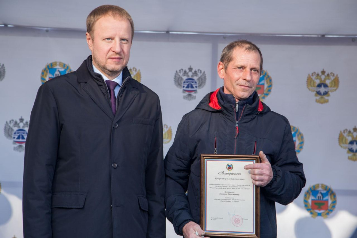 Почетное звание «Заслуженный работник дорожной отрасли Алтайского края» присвоено Сергею Гончару, первому заместителю начальника ФКУ Упрдор «Алтай». Почетной грамоты Правительства Алтайского края удостоены Ирина Атаманцева, заместитель начальника отдела – начальник подотдела дорожных сооружений организации работ по содержанию, сохранности автомобильных дорог ФКУ Упрдор «Алтай»; Денис Попрядухин, заместитель директора по строительству ООО «Барнаульское ДСУ № 4»; Александр Турчик, генеральный директор ООО «Строй-Крафт». Благодарность Губернатора Алтайского края вручили Анатолию Галютину, машинисту автомобильного крана ООО «Барнаульское ДСУ № 4».